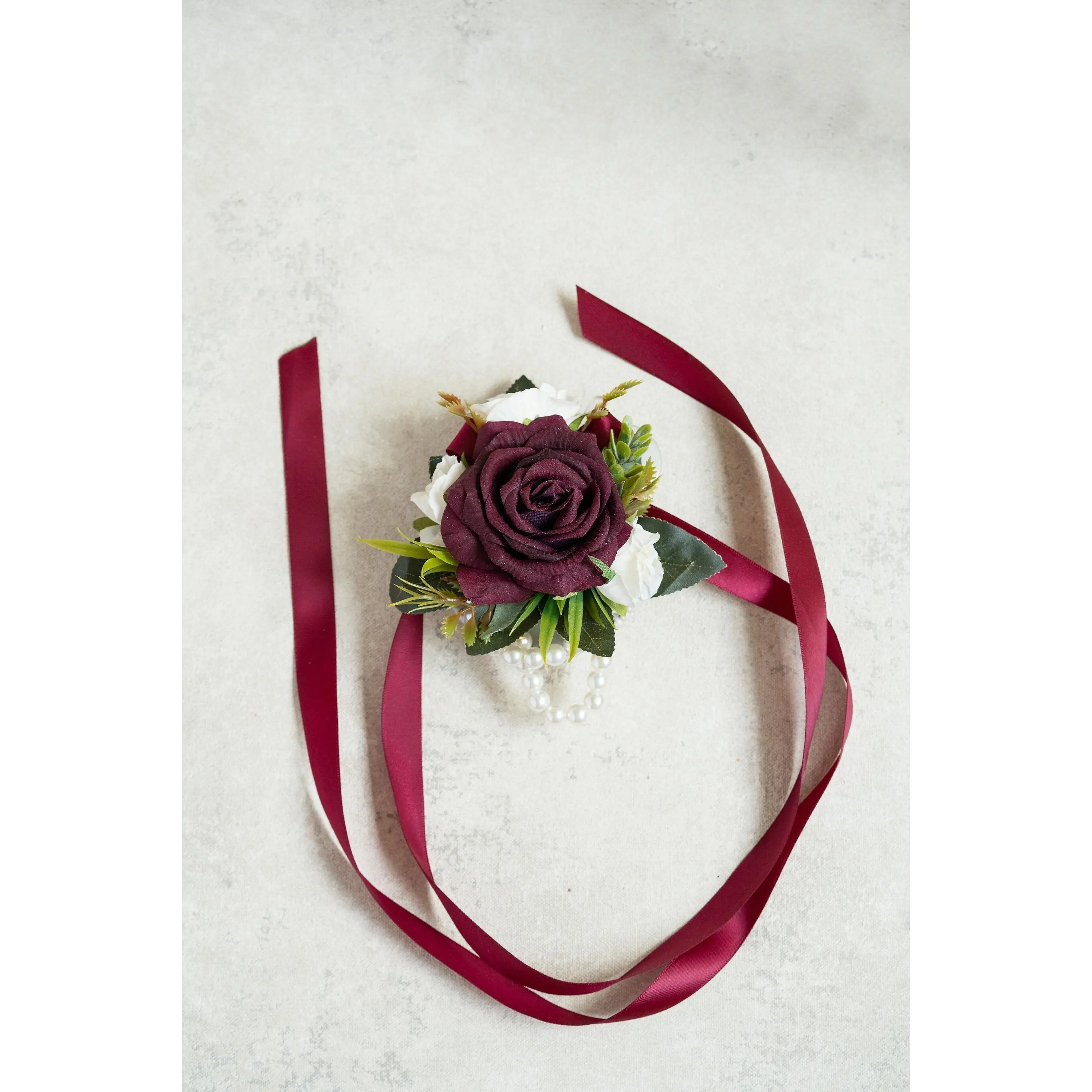 ❤ This elegant corsage / boutonniere is designed with a real touch burgundy rose, paired with ivory blooms, greenery accents, and a pearl bracelet base. The price includes one corsage or one boutonniere.The ribbon color can be customized, and we offer complimentary ribbon printing services.❤ Dimension:Approx. 3.54 inches × 5.91 inches❤ Lovingly crafted with real touch flowersThe lifelike texture and vibrant color gradations make this design a premium choice among artificial flowers.It offers the beauty of fresh blooms with lasting elegance.❤ ColorBurgundy, ivory, and greenery❤ Perfect for Weddings, Proms & Special EventsThis corsage & boutonniere is ideal for weddings, proms, or formal celebrations.It makes a beautiful gift for mothers, bridesmaids, groomsmen, or as a keepsake accessory.❤ Matching items availableWe also create coordinating bouquets, corsages, boutonnieres, chair flowers, swags, and more.Message us for a quote or email coutureblooms.care@gmail.com — we’d love to work with your budget and design a custom package just for you!❤ Custom colors availableIf you’d like this design in a different color palette, just let us know—we’ll happily customize it for you.❤ PackagingEach piece is carefully packaged to arrive safely and beautifully.❤ShippingTo better serve you and save your time, we use our private shipping method as the default for most orders: US Addresses: Estimated delivery in 2-5 days UK & European Addresses: Estimated delivery in 5-10 days Australia & Canada Addresses: Estimated delivery in 10-25 daysFor urgent orders, we offer FedEx and DHL global express shipping.***Our home base is in Orange County, California, and we source from global manufacturing partners to ensure the highest quality of our products.Feel free to reach out with any additional questions. Your satisfaction is our top priority.***All items and photos are copyrighted and belong exclusively to Couture Blooms.
