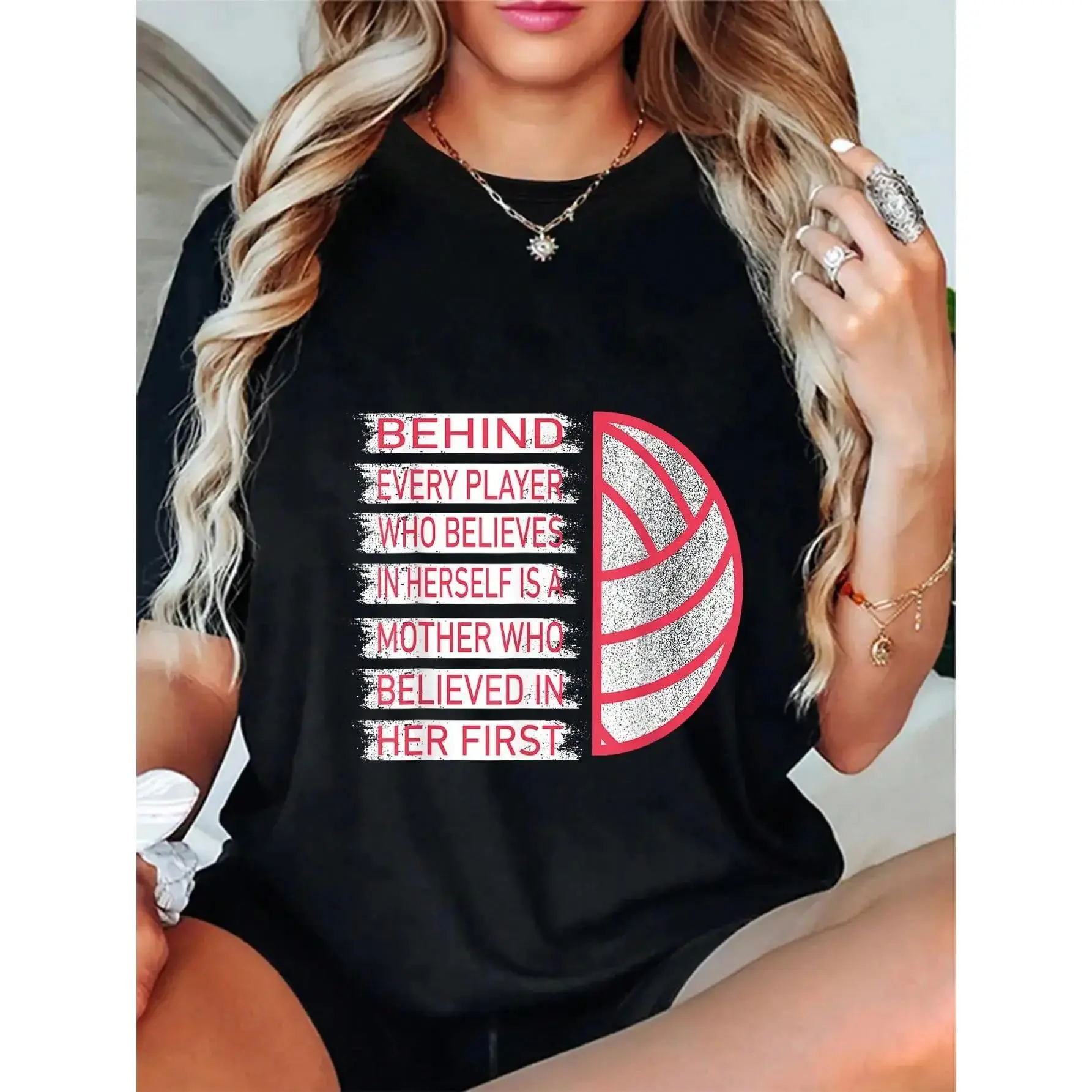 GGOR 100% Cotton Behind Every Player Is A Mother Volleyball Mom T-Shirt