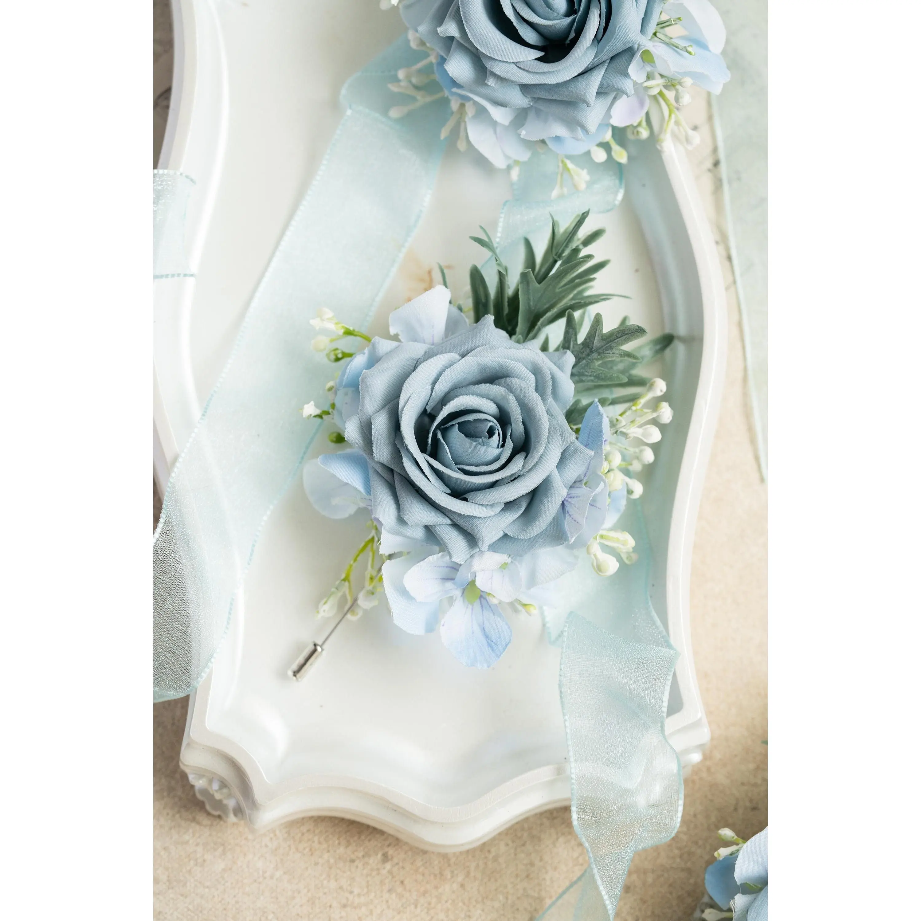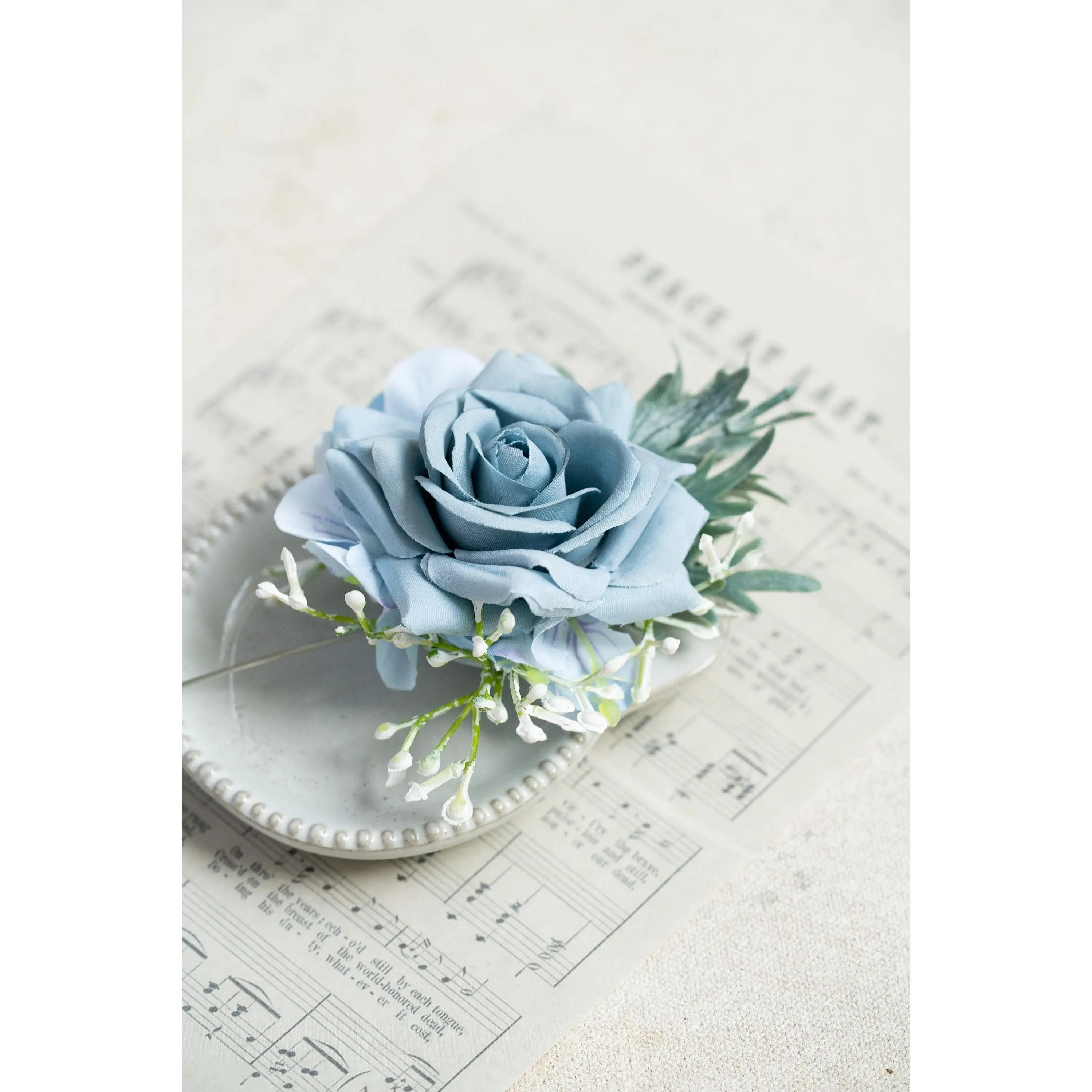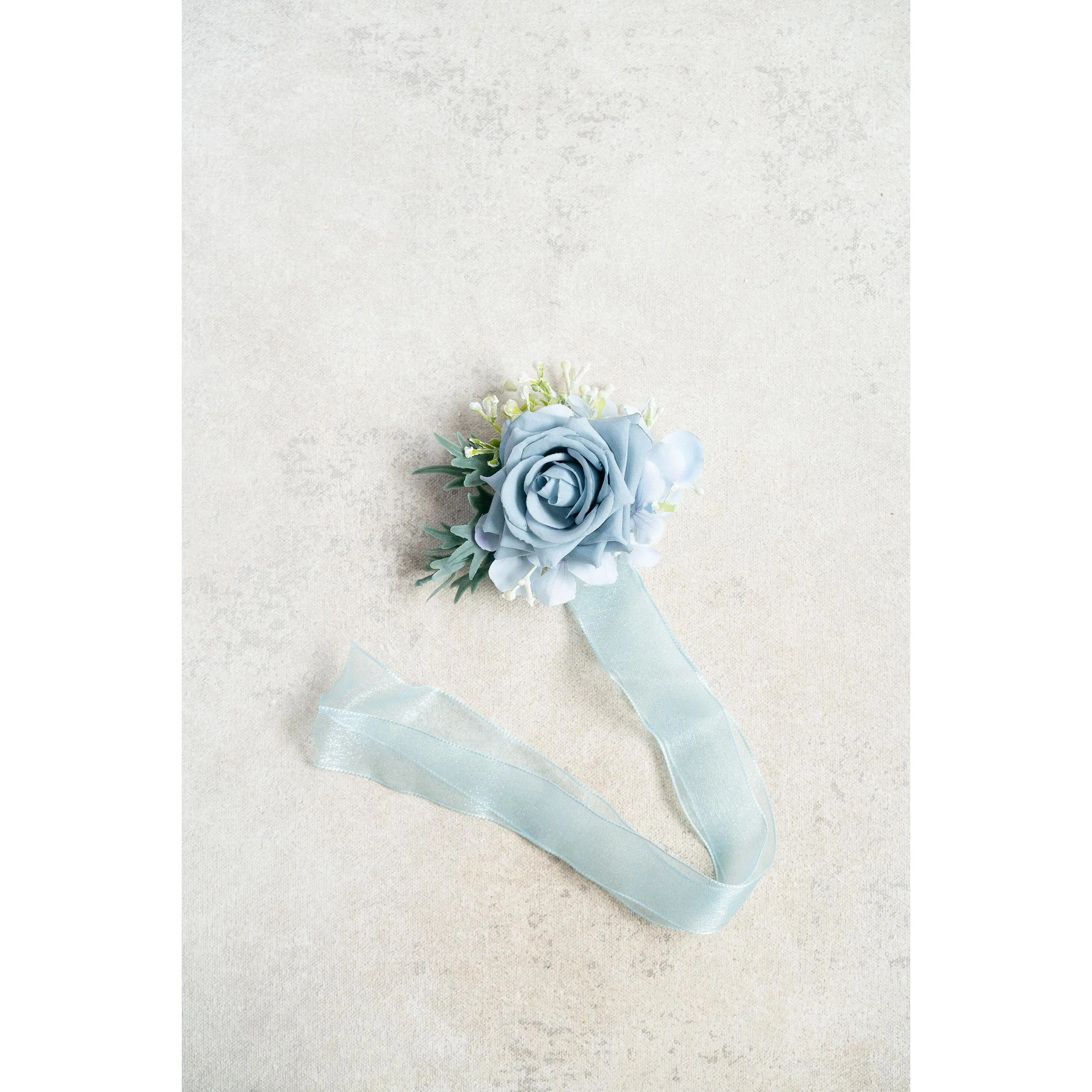 ❤This dusty blue corsage is made with silk rose flowers and fern. The price includes one corsage or one boutonniere.The ribbon color can be customized, and we offer complimentary ribbon printing services.❤ Dimension: 3.1 inches in Diameter❤ Lovingly crafted with real touch flowersThis romantic-looking, lifelike bouquet is crafted to closely mimic the look and feel of fresh blooms. It offers exceptional elasticity, flexibility, and vibrant color gradations, making it the premium choice among artificial flowers.❤ ColorDusty blue❤ Versatile corsage for Weddings, Events & Home DecorThe silk corsage is an ideal choice for wedding flower decorations and home decor. The realistic, delicate petals add elegance and charm, making it perfect for weddings, special events, or even as a beautiful accent in your home.❤Matching bouquets, boutonnieres...All matching items are available, including boutonnieres, corsages, chair decorations, swags, hair accessories, and home decorations. Please message us for a quote, or Email us at coutureblooms.care@gmail.com. We would love to work with your budget and do custom wedding packages just for you!❤Change flower colorsIf you love this bouquet but want different colors, please send me a message, we'd be happy to provide a quote for you.❤PackagingWe will pack your flowers very carefully to ensure they will be delivered safely and in perfect shape.❤ShippingTo better serve you and save your time, we use our private shipping method as the default for most orders: US Addresses: Estimated delivery in 2-5 days UK & European Addresses: Estimated delivery in 5-15 days Australia & Canada Addresses: Estimated delivery in 10-25 daysFor urgent orders, we offer FedEx and DHL global express shipping.***Our home base is in Orange County, California, and we source from global manufacturing partners to ensure the highest quality of our products.Feel free to reach out with any additional questions. Your satisfaction is our top priority.***All items and photos are copyrighted and belong exclusively to Couture Blooms.