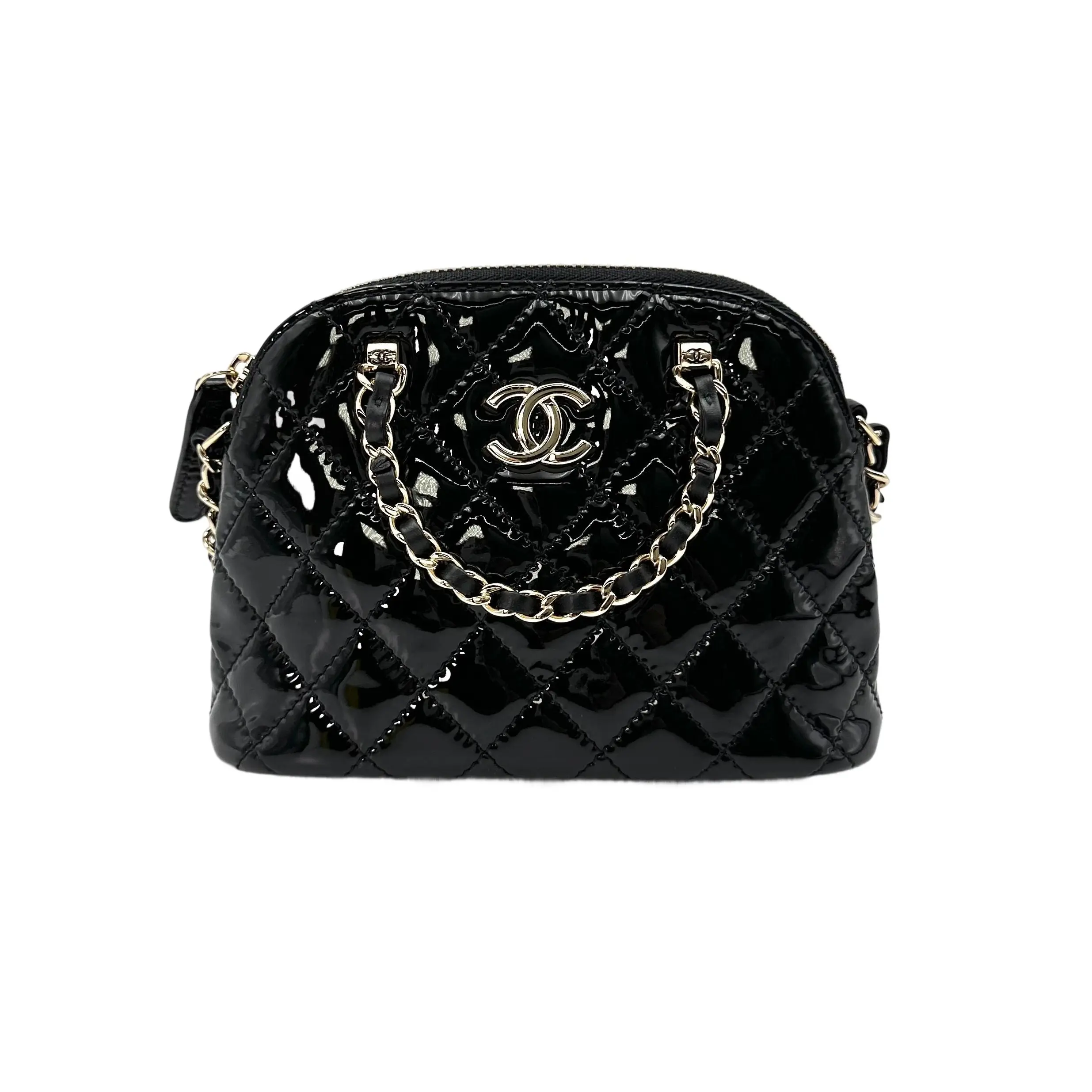Pre-owned CHANEL Patent Crossbody Bags 23S Black Quilted Leather Mini Bowling Bag(TP***8K) CC1536