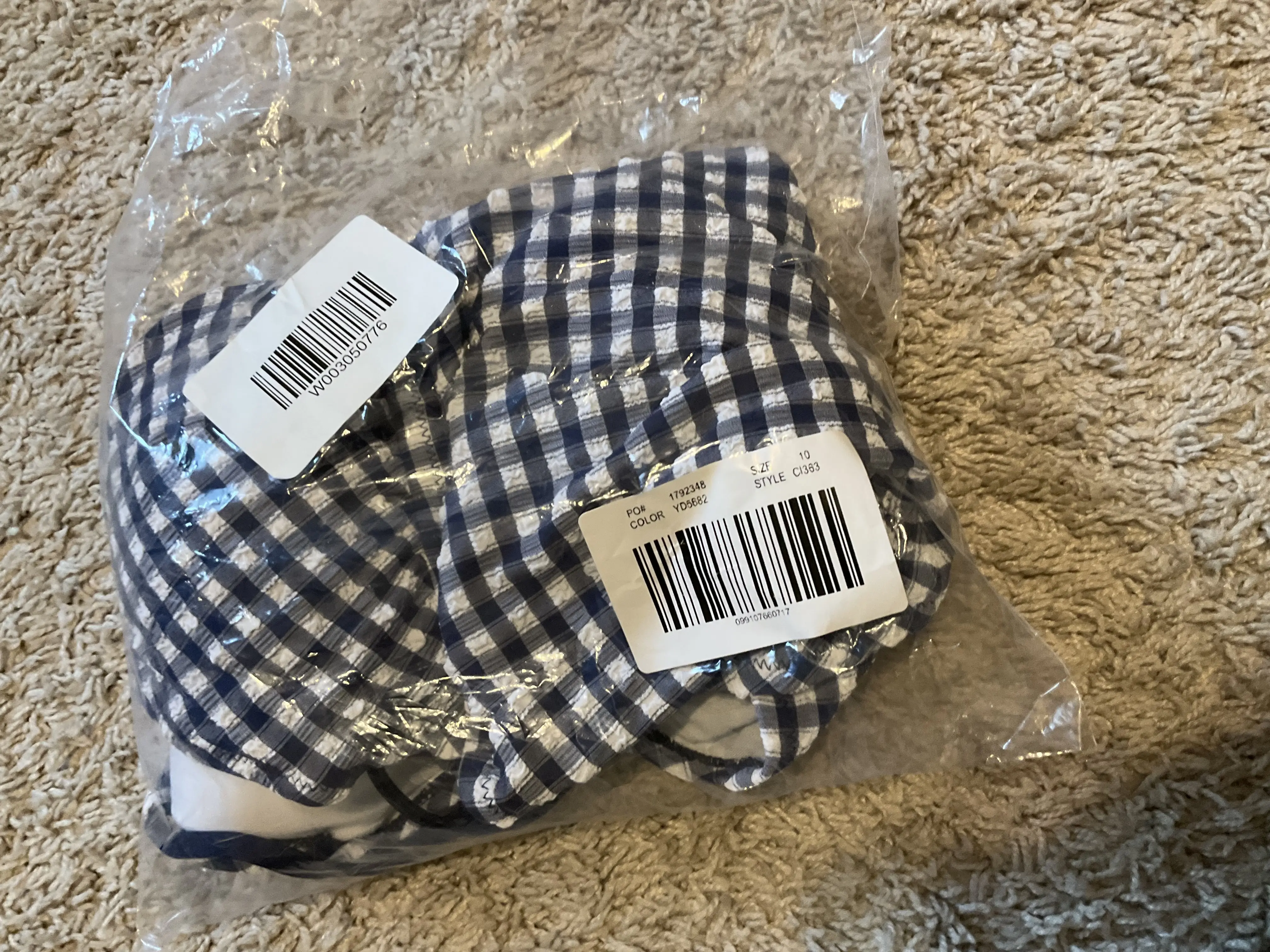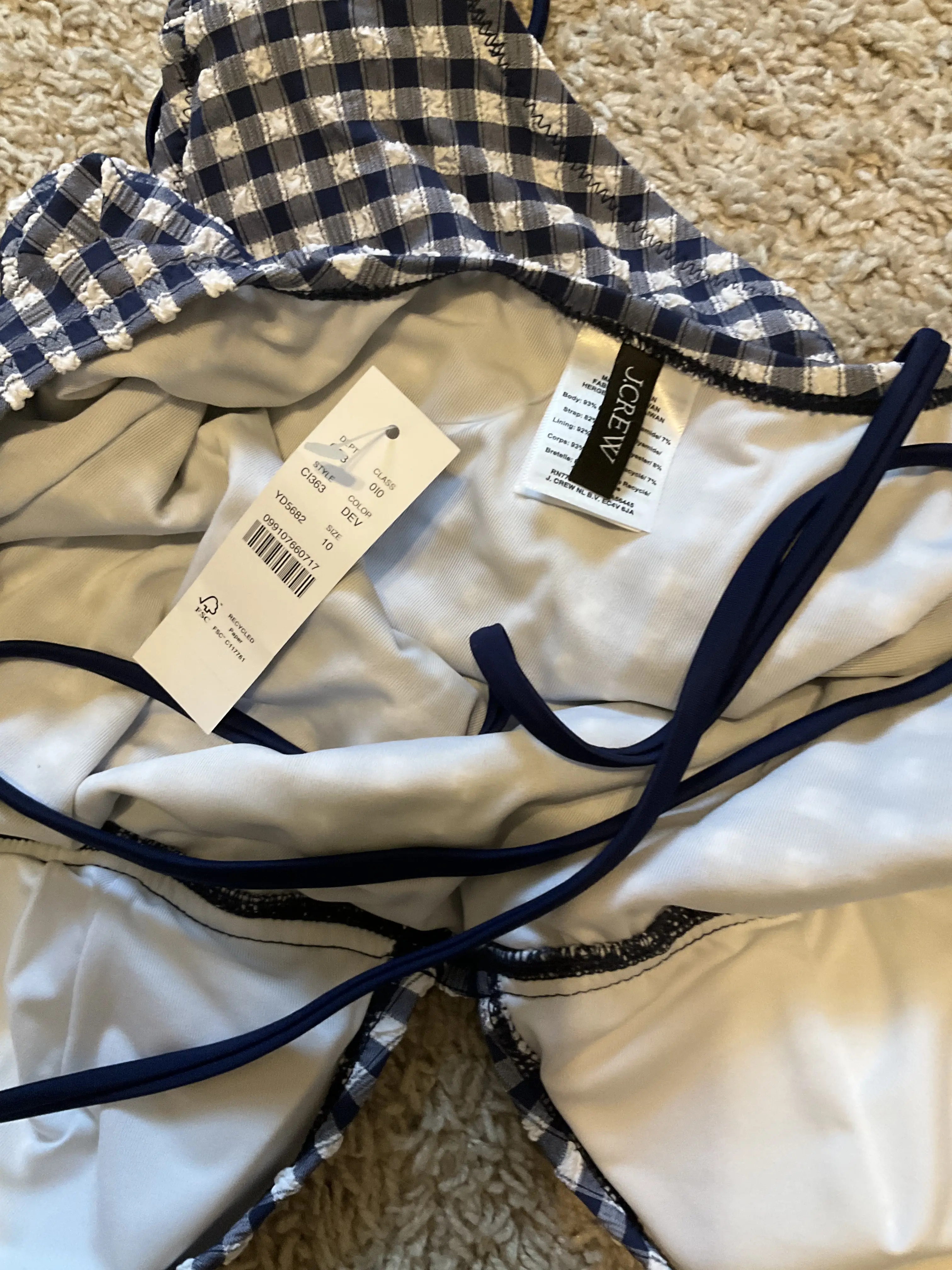 J.CREW one-piece swimsuit in gingham. SIZE: 10. COLOR: navy blue. ITEM # ci363.