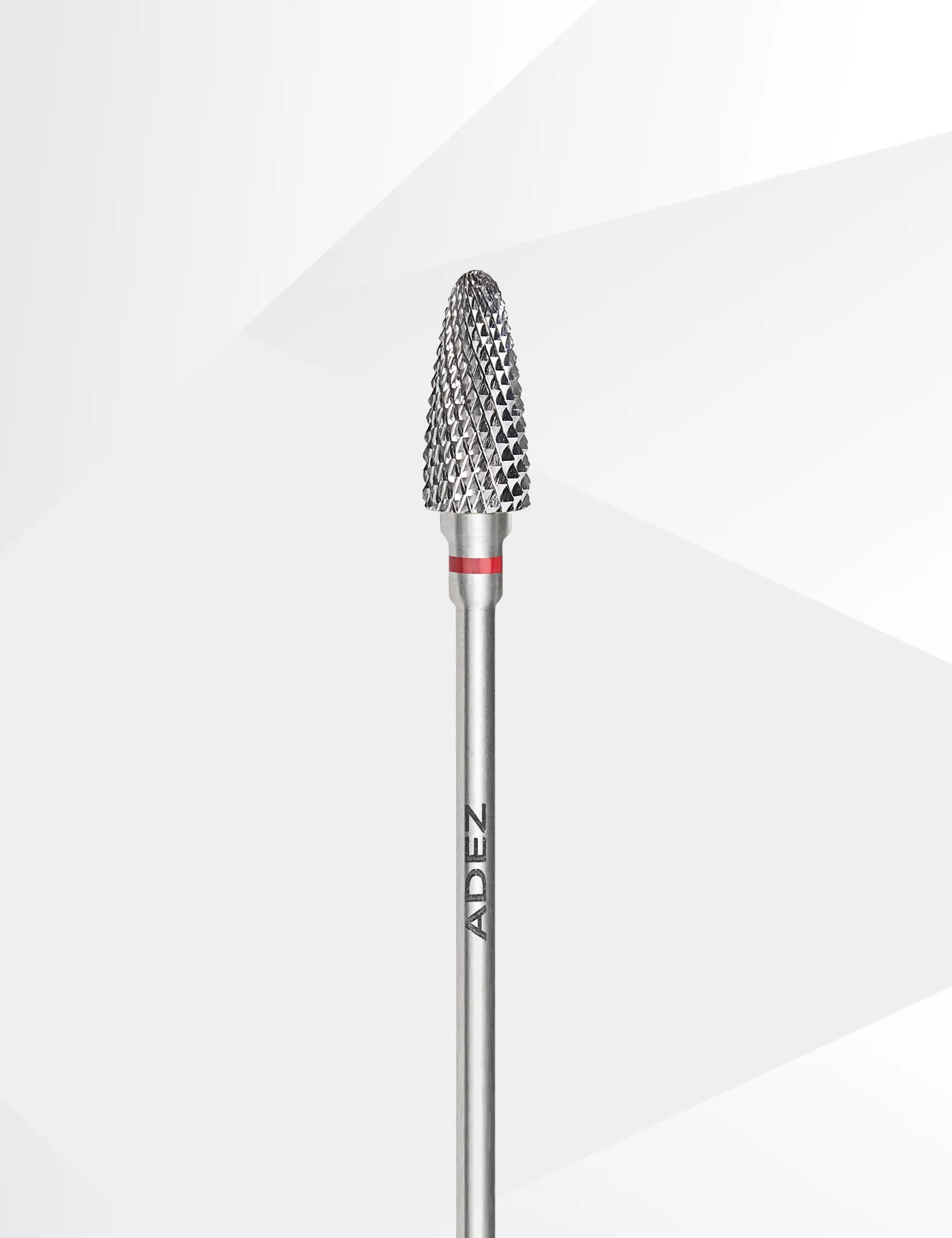 The top is made of tungsten carbide. Its oval-shaped safety tip, with an ideal grit or surface, is perfect for removing artificial material. It can remove both flexible and rigid materials. Designed for bidirectional use.