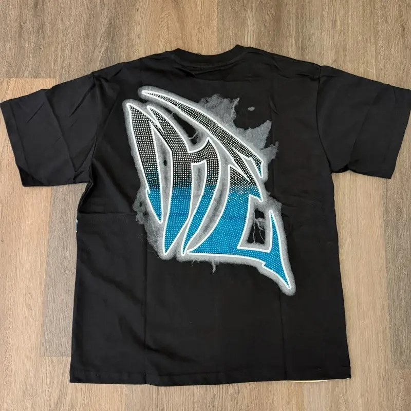 Premium oversized heavyweight tee featuring detailed blue angel artwork on front with rhinestone-style oversized lettering. Back includes large matching blue statement graphic for full streetwear aesthetic. High quality soft cotton blend built for comfort, layering, and standout fits 🔥
