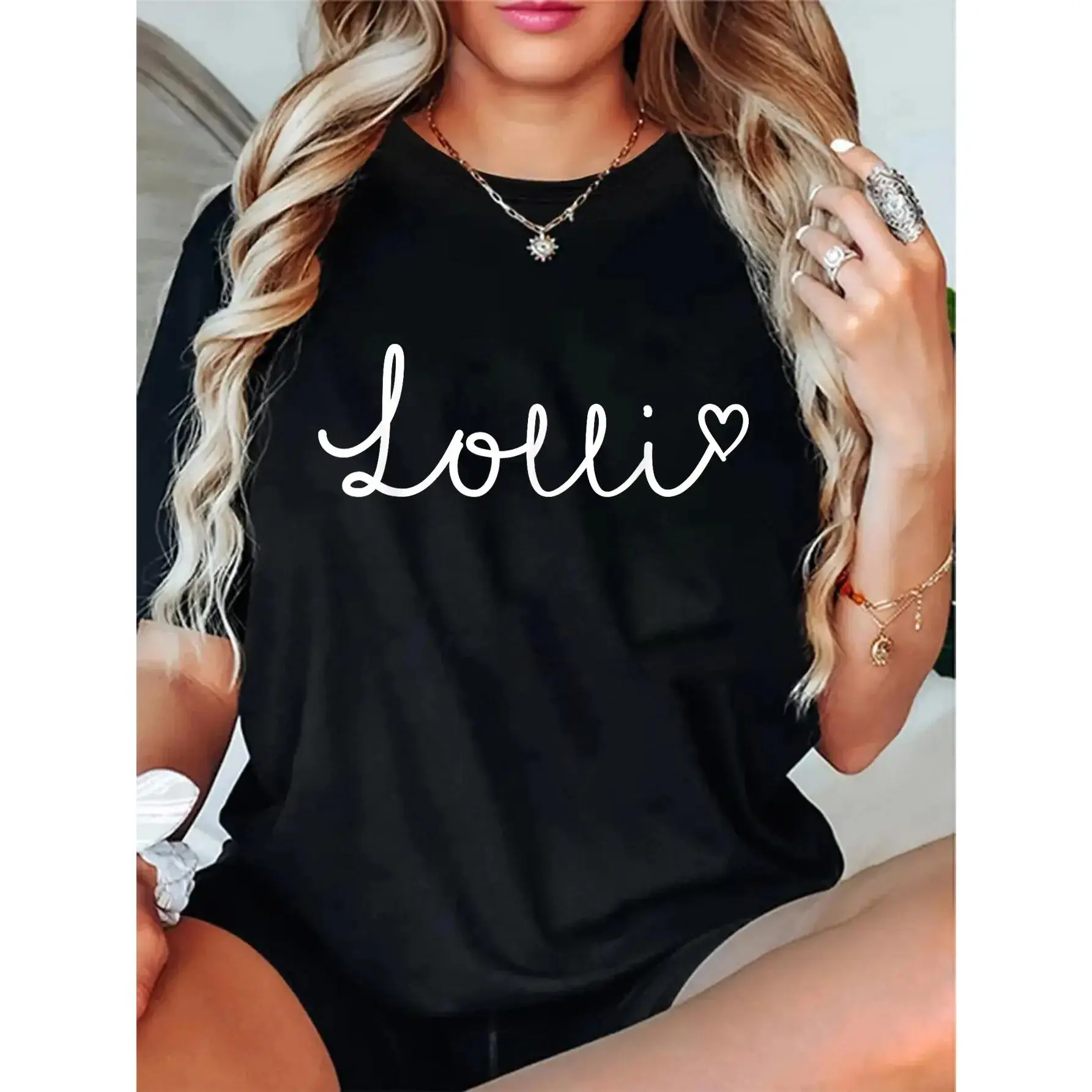 GGOR 100% Cotton Unisex Lolli Gifts For Women Grandma Heart Mother's Day Lolli T-Shirt