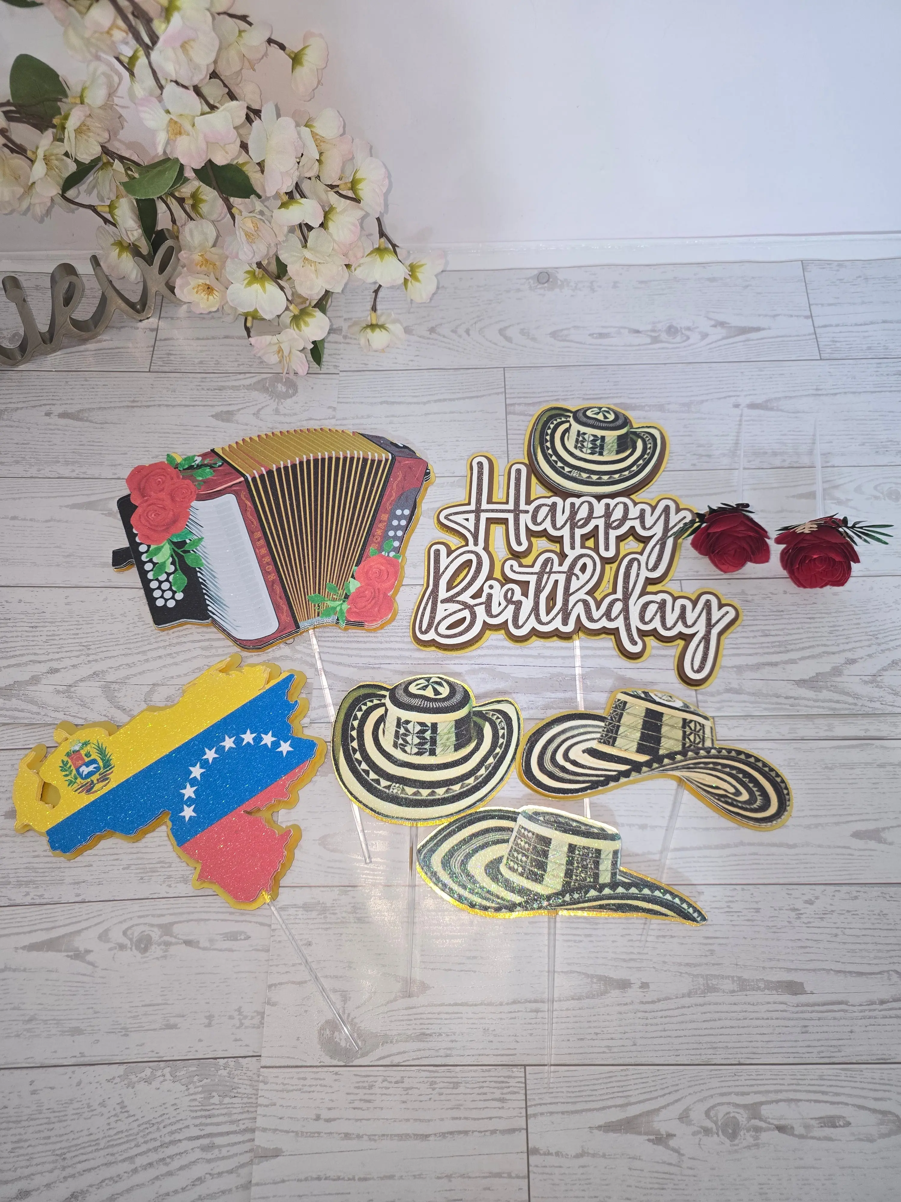 Celebrate your roots in style with this personalized 3D glitter cake topper set inspired by the iconic Sombrero Bolteao — a beloved symbol of Colombian and Venezuelan culture! 🎉🪅