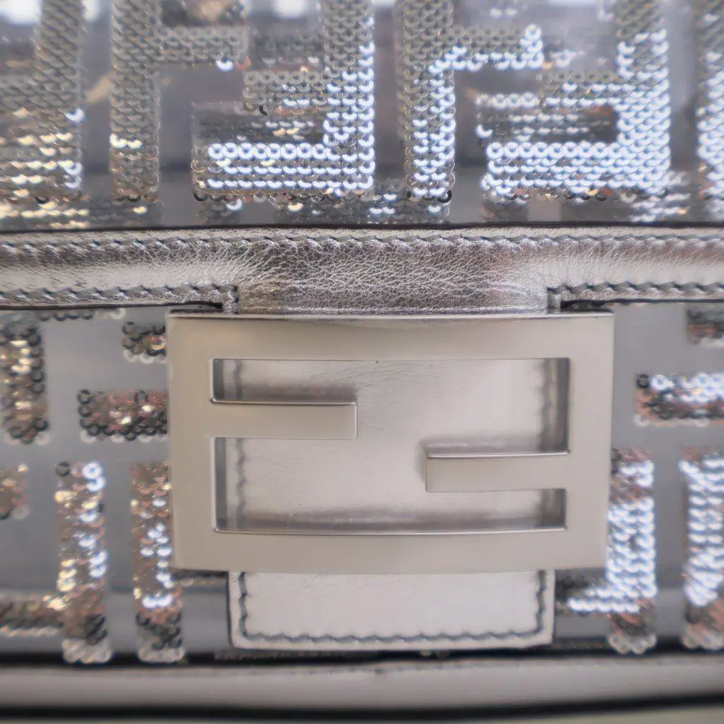 Title:Fendi Medium Sequin PVC Baguette,Vendor:Fendi,Condition Description:9.5/10 (some minor flaws),Material:PVC,Sequins,Size:10.5" x 6.5" x 2",Includes:Dustbag, Strap,Varient Serial Number:8BR600.AAFW.208.10428,Hardware: