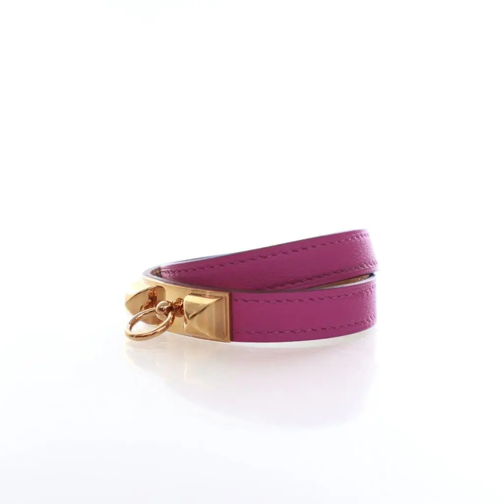 Title:Hermes Magnolia Rivale Double Tour Bracelet,Vendor:Hermes,Condition Description:9.5/10 (some minor flaws),Material:Swift,Size:T3,Includes:Box, Dustbag, Receipt,Varient Serial Number:C - 2018,Hardware: