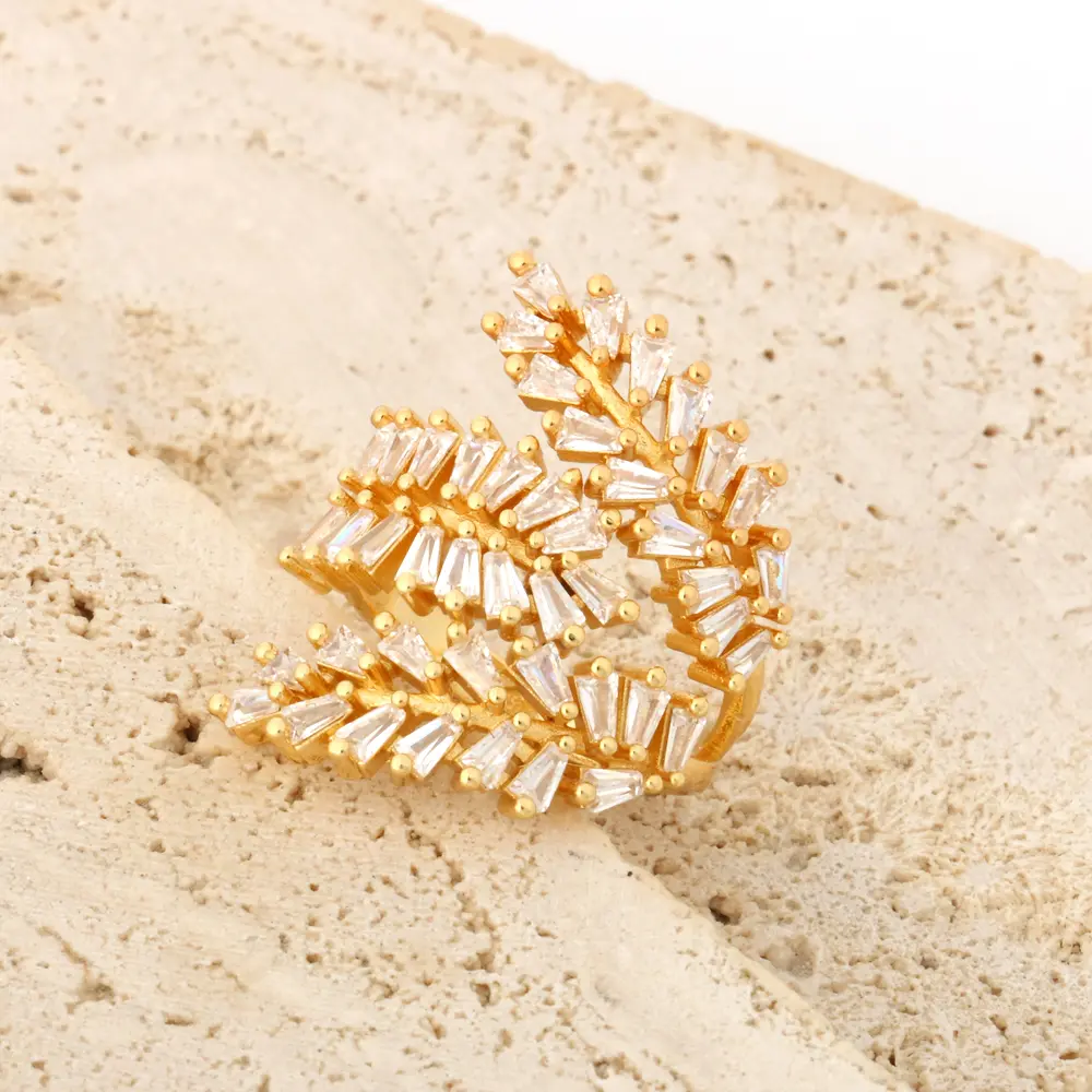 Make a bold yet elegant statement with this Leaf-inspired wrap ring, designed in a trendy style for modern women. Crafted from high-quality copper and finished with luxurious gold plating, this ring features shimmering micro-insert zircon stones arranged in a delicate leaf pattern for a radiant, eye-catching look.