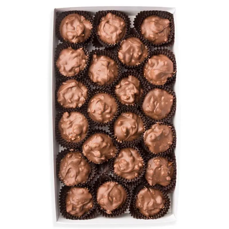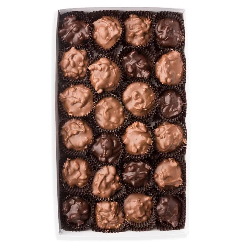 The Pecan Cluster is a delightful combination of buttery pecans, rich caramel, and smooth chocolate, handcrafted to perfection. Each cluster is made with fresh, crunchy pecans layered with creamy caramel and coated in premium milk or dark chocolate for an indulgent treat that’s hard to resist. Perfect for gifting, sharing, or savoring on your own, it’s a timeless classic for any chocolate and nut lover.