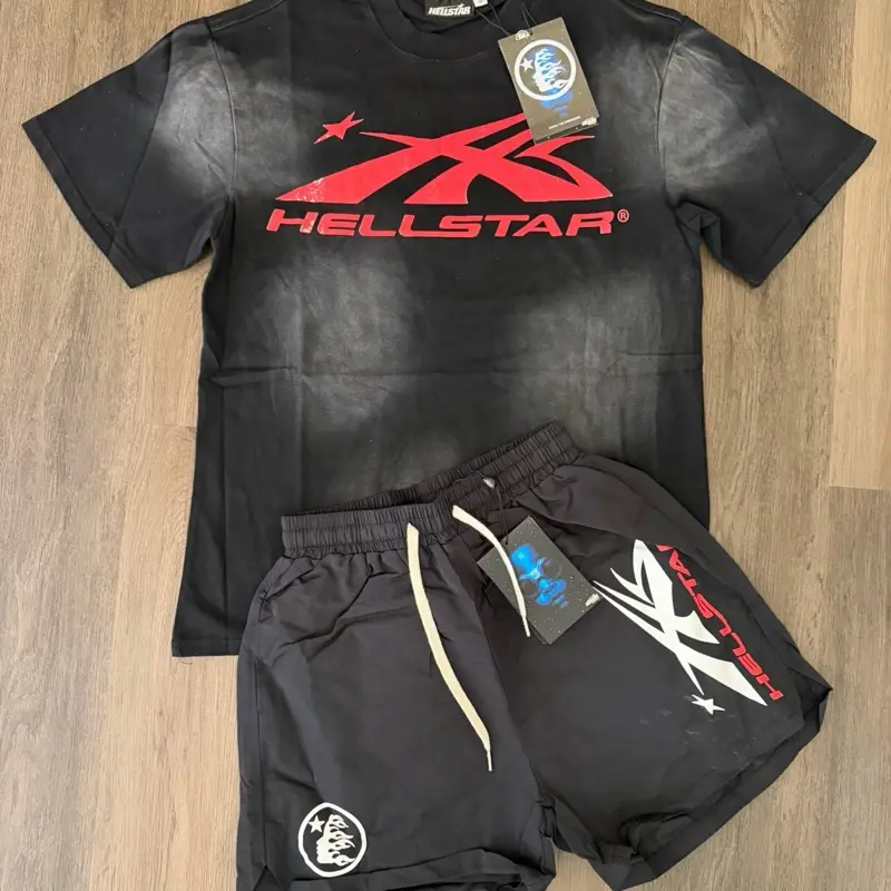 PREMIUM MATCHING SET featuring heavyweight black oversized tee with bold red front statement graphic + matching breathable mesh shorts with side logo detailing 😮💨🔥 HIGH QUALITY MATERIAL on both pieces with luxury feel and PERFECT streetwear fit‼️ Shorts include adjustable drawstrings + lightweight athletic fabric for all day comfort 💯 EASY FULL FIT READY TO WEAR STRAIGHT OUT THE BOX 🚨 VERY LIMITED STOCK AVAILABLE — ONCE IT SELLS OUT IT’S GONE TAP IN NOW 🔥