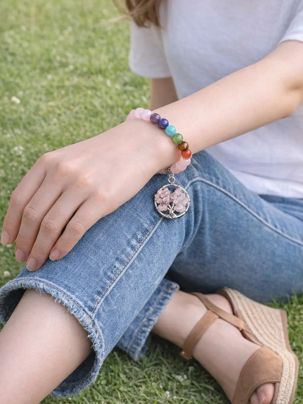 Crystal Beaded Bracelet, 7 Chakra Crystal Healing Bracelet
