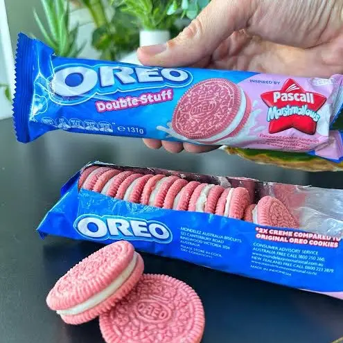 Dive into the delightful Oreo Double Stuf Pascall Marshmallow 131g. This cookie sandwich is inspired by Pascall Marshmallows, offering a unique twist on a classic favorite. Each bite combines the familiar Oreo taste with the soft, marshmallowy texture. Perfect for those who love a sweet, creamy treat.
