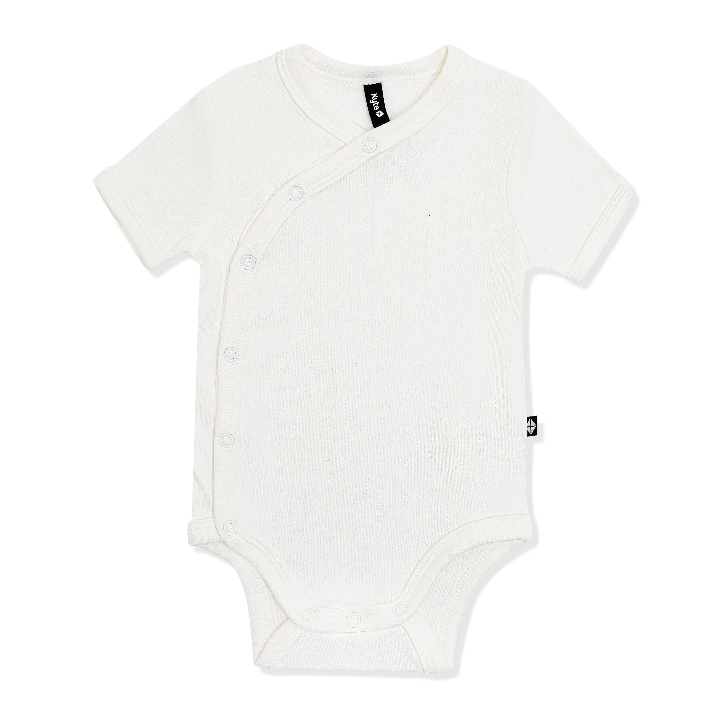 Keep your newborn looking sweet and feeling comfortable in this super-soft bodysuit made from pointelle knit bamboo. The breathable, stretchy fabric is exceedingly gentle on your little one’s skin, while the crossover kimono design reduces friction on their sensitive umbilical stump. The perfect base layer for any outfit, this wonderfully soft bodysuit makes those first few weeks easy as can be.
