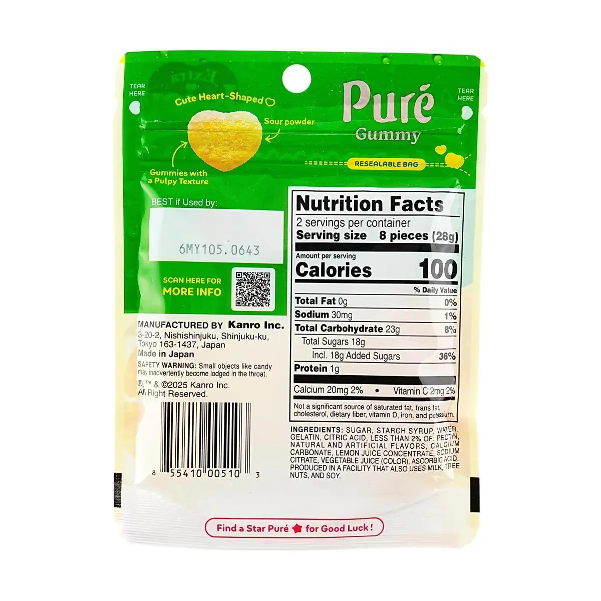 Kanro Pure Gummy Candy – Lemon Flavor with Sour Powder (1.97 oz)