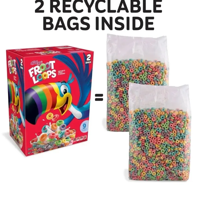 Kellogg's Froot Loops Breakfast Cereal 43.6 oz Sweet Fruity Bulk Family Size Box Muesli Oatmeal Flavors
