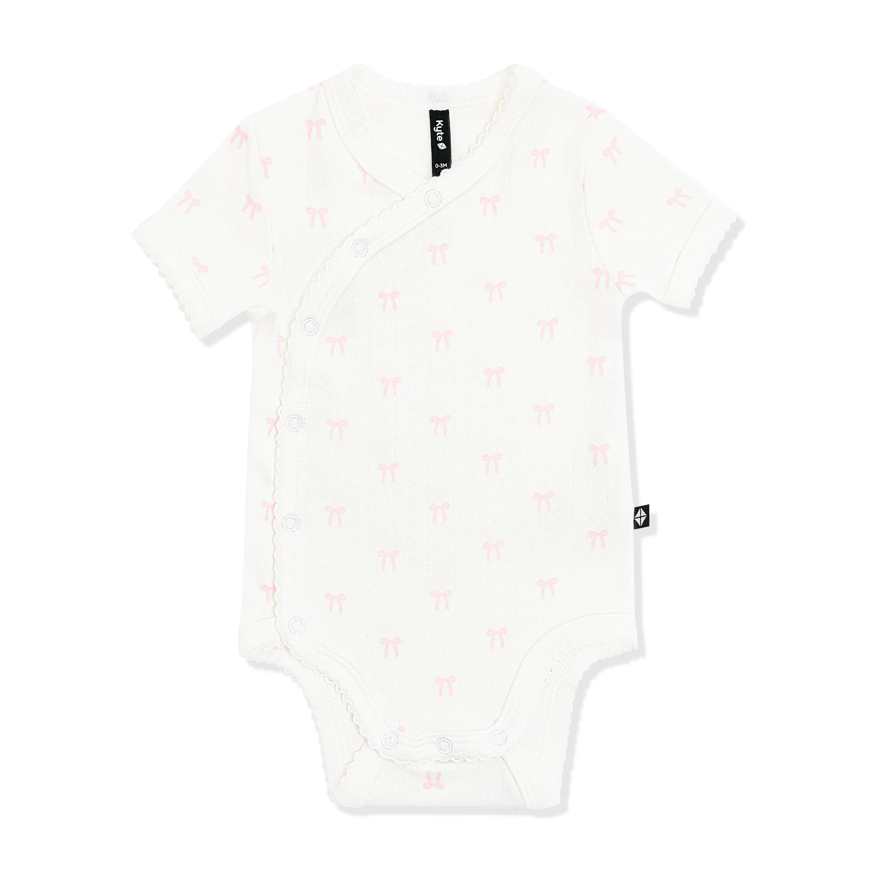 Pointelle Kimono Bodysuit in Sweet Pink Bow