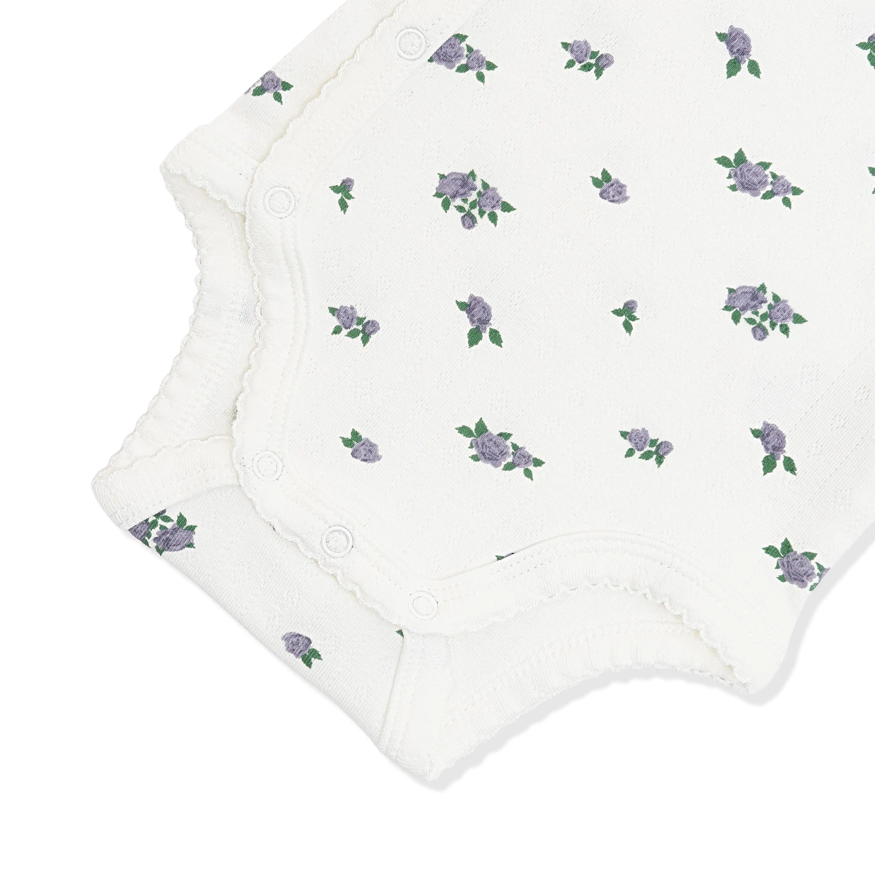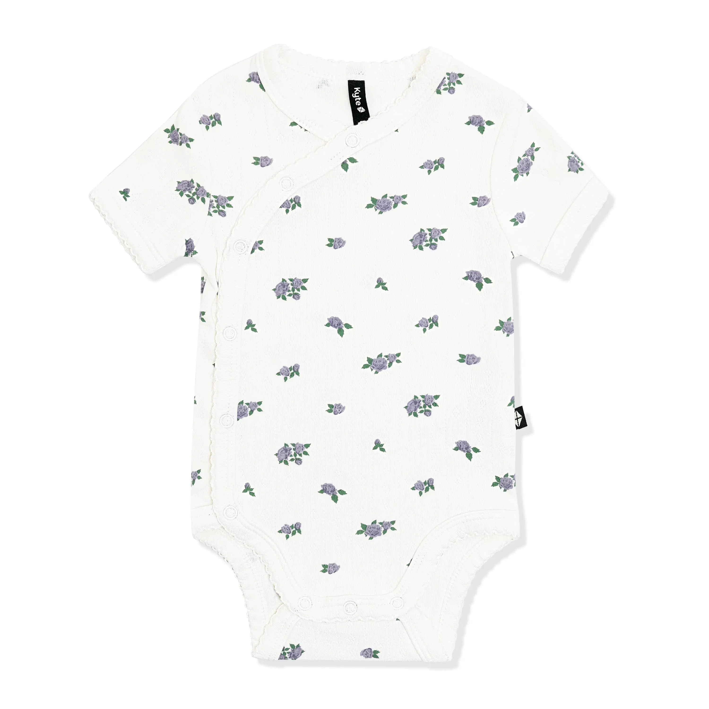 Keep your newborn looking sweet and feeling comfortable in this super-soft bodysuit made from pointelle knit bamboo. The breathable, stretchy fabric is exceedingly gentle on your little one’s skin, while the crossover kimono design reduces friction on their sensitive umbilical stump. A picot trim adds a sweet, special touch for timeless style. The perfect base layer for any outfit, this wonderfully soft bodysuit makes those first few weeks easy as can be.