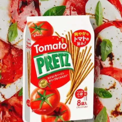 Experience the bold, savory taste of Japan with Glico Tomato Pretz, a uniquely crispy pretzel-style snack infused with rich tomato flavor and a hint of olive oil. Each slender stick delivers a satisfying crunch, coated in a tangy, umami-packed seasoning that perfectly balances sweetness, acidity, and savory depth.