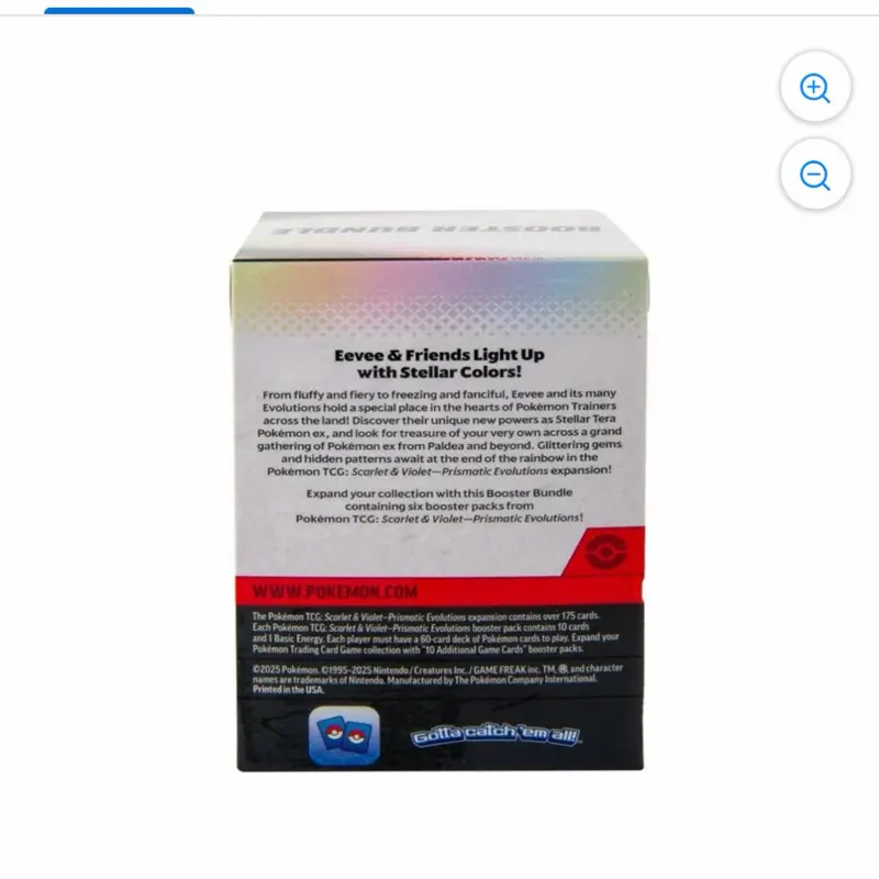 Includes six booster packs from the Pokémon TCG: Scarlet & Violet—Prismatic Evolutions expansion Each booster pack contains 10 cards and 1 Basic Energy. Cards vary by pack.