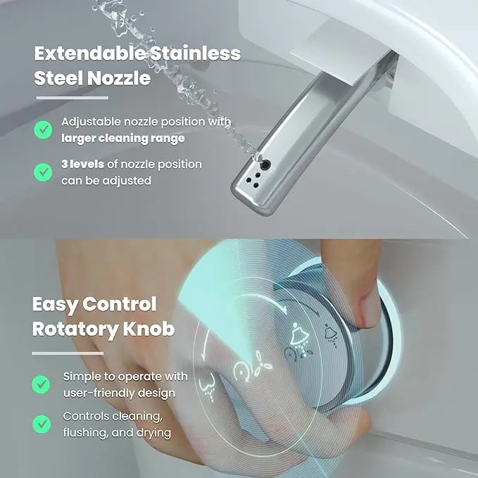 ·❤️ [Advanced Hygiene Features] The stainless steel self-cleaning nozzle and UV light maintain hygiene between uses. The intelligent bidet toilet offers a superior clean.