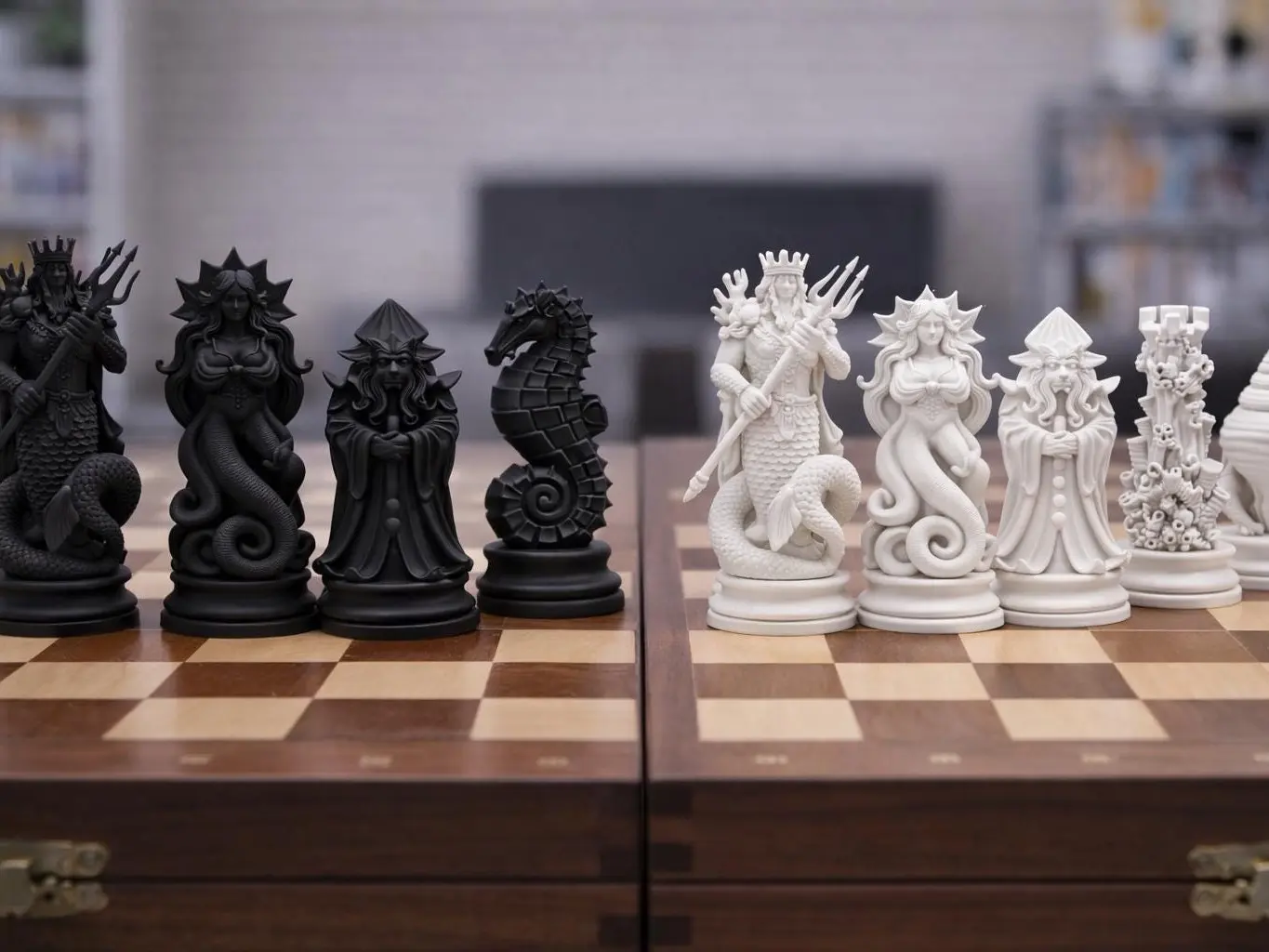 Whether displayed as a collector’s piece or used for play, this ocean mythology chess set captures the spirit of the sea and the elegance of classic chess.