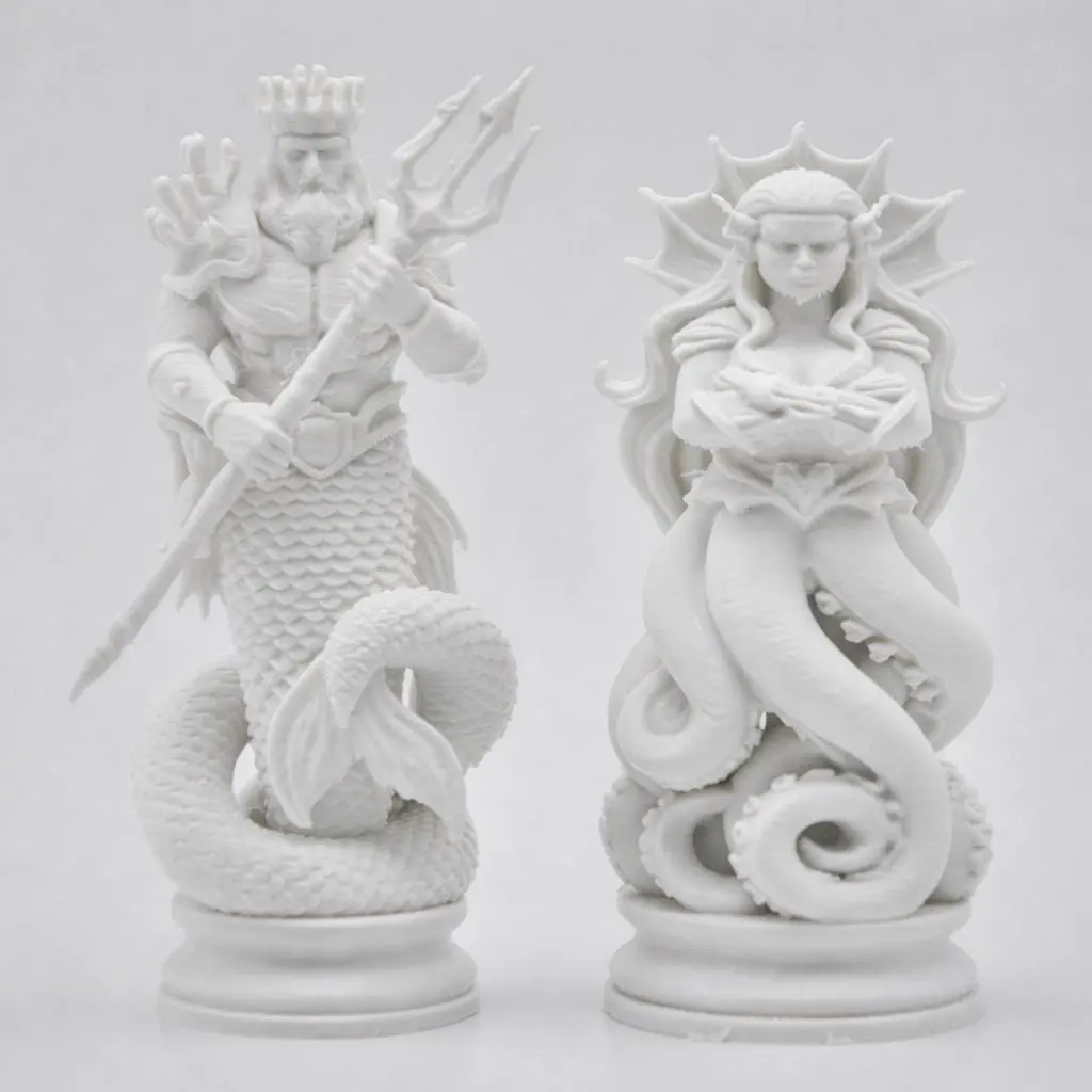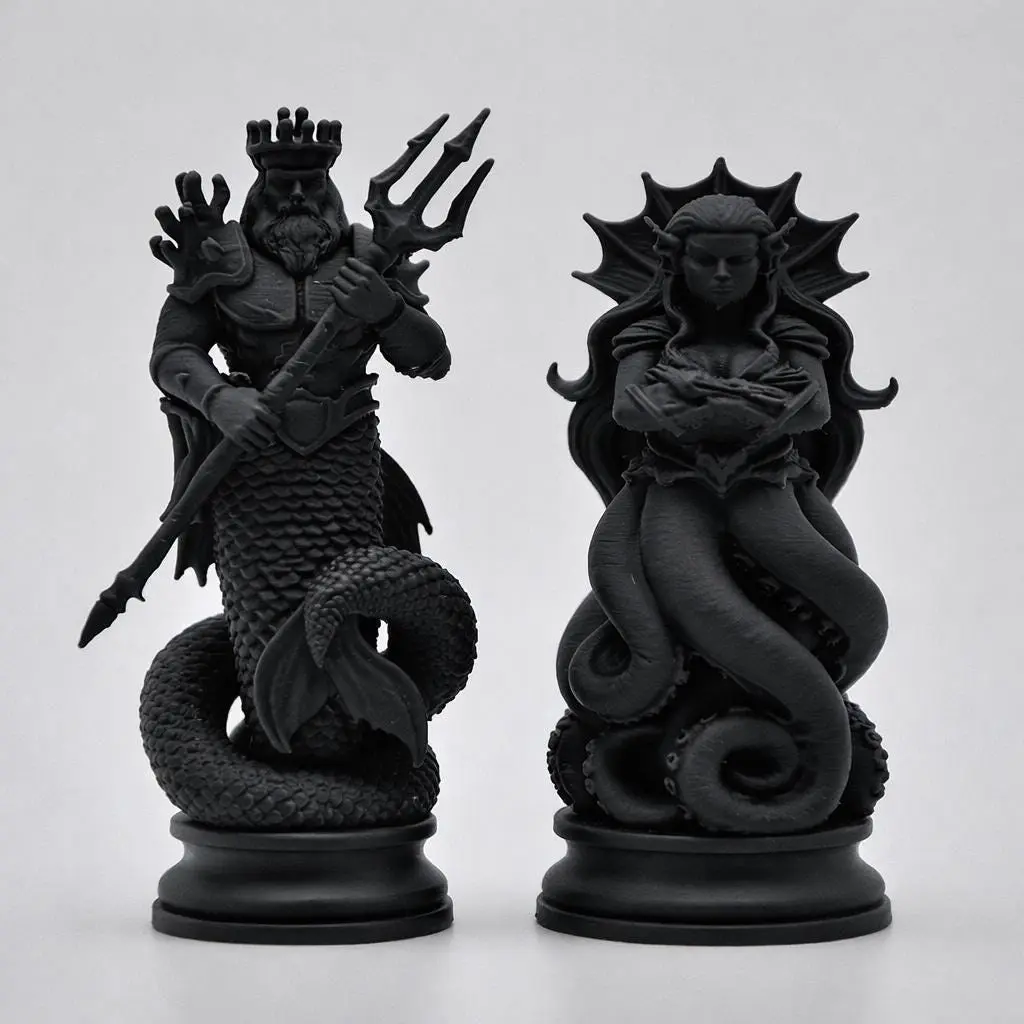 Dive into the world of ocean mythology with this unique fantasy chess set inspired by the mysterious depths of the sea.