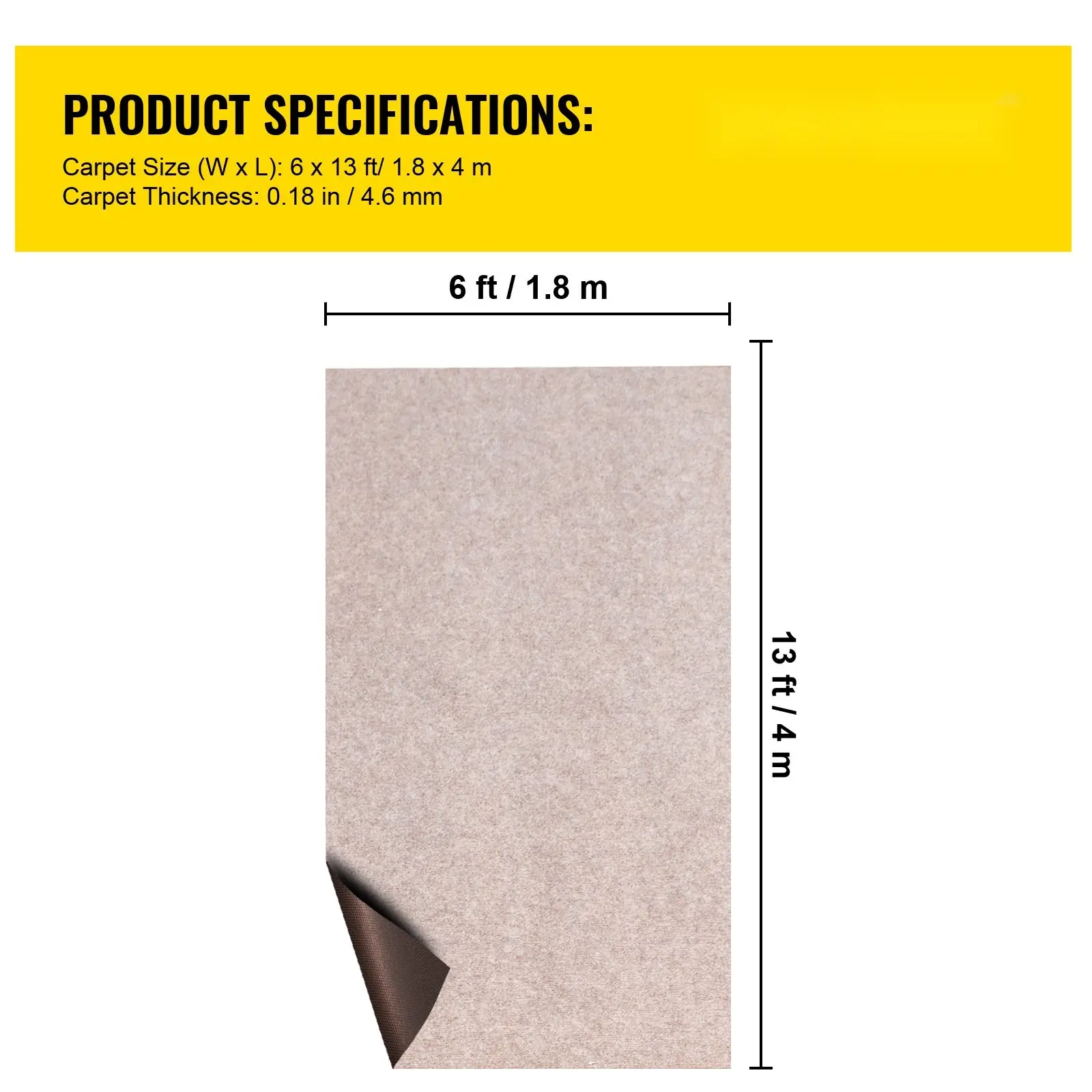 ·Premium Marine Carpet: Color: Light Brown; Size: 6 x 13 ft (1.8 x 4 m); Carpet Thickness: 0.18 in (4.6 mm); Covering Area: 78 sq.ft (7.2 mò). Upgraded polyester fiber ensures our advanced marine carpet remains durable for years to come. Note: Different visual angles and lights would make the color looks various on the carpet.