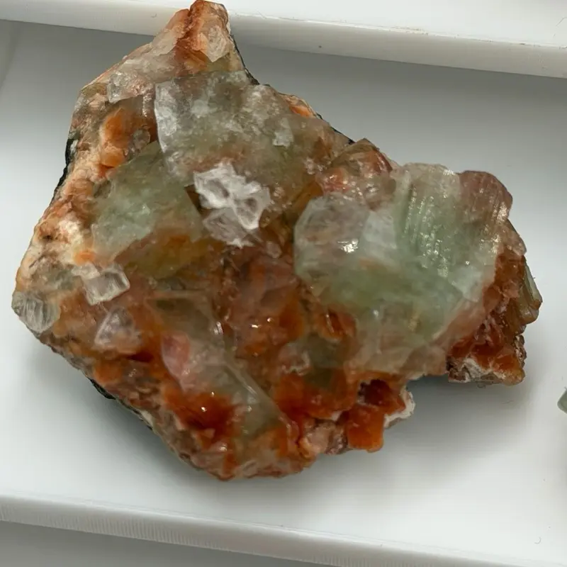 💚✨ Green Apophyllite Side Cube Cluster on Peach Stilbite ✨🧡