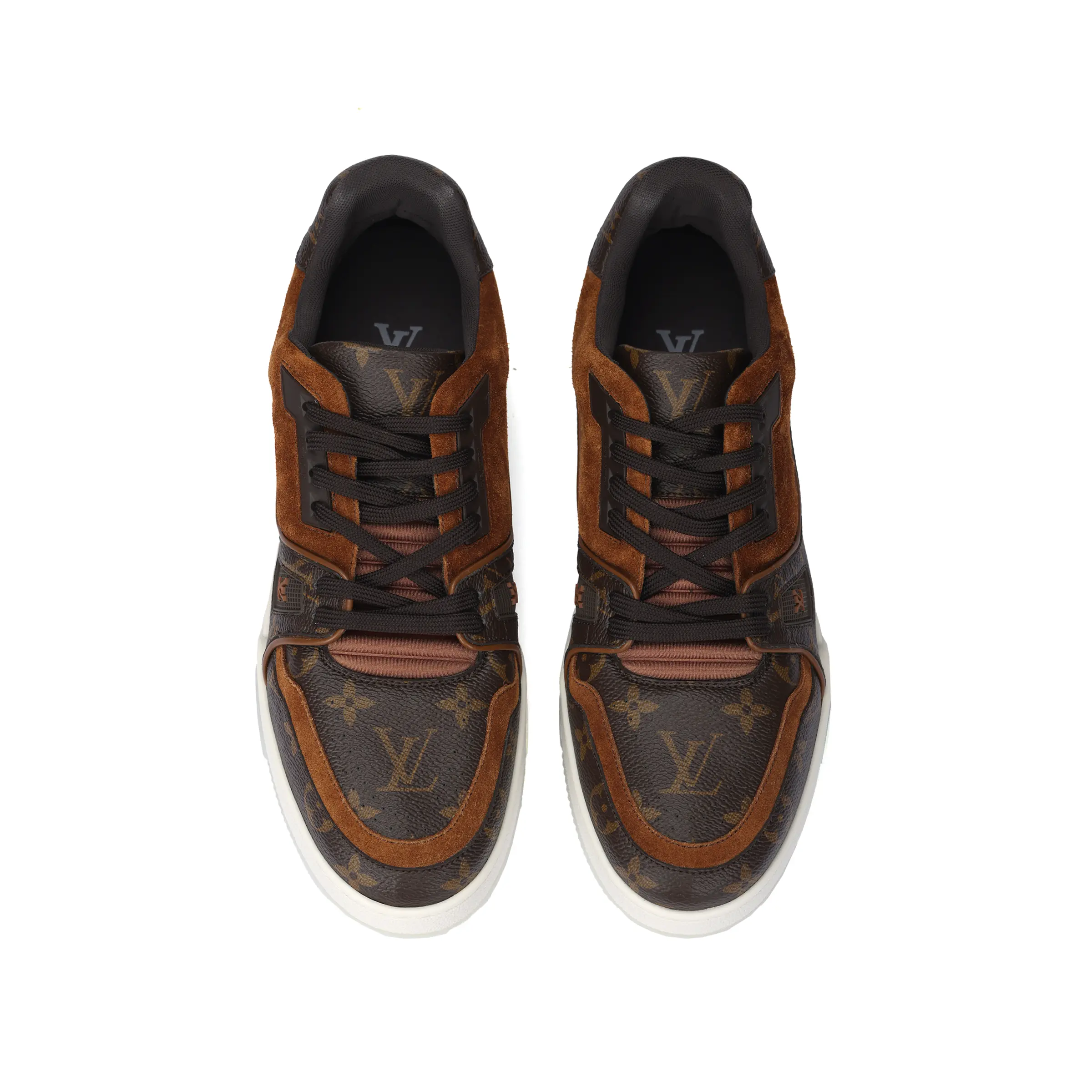 Materials: 65% coated Monogram canvas, 25% brown calf suede, 10% rubber outsole and EVA midsole