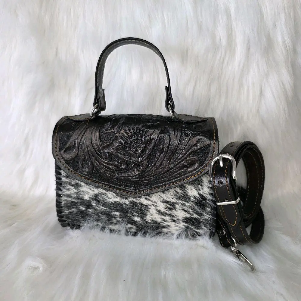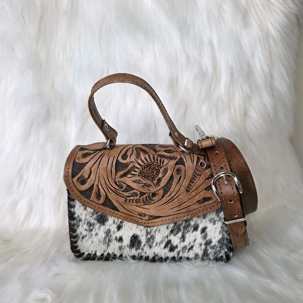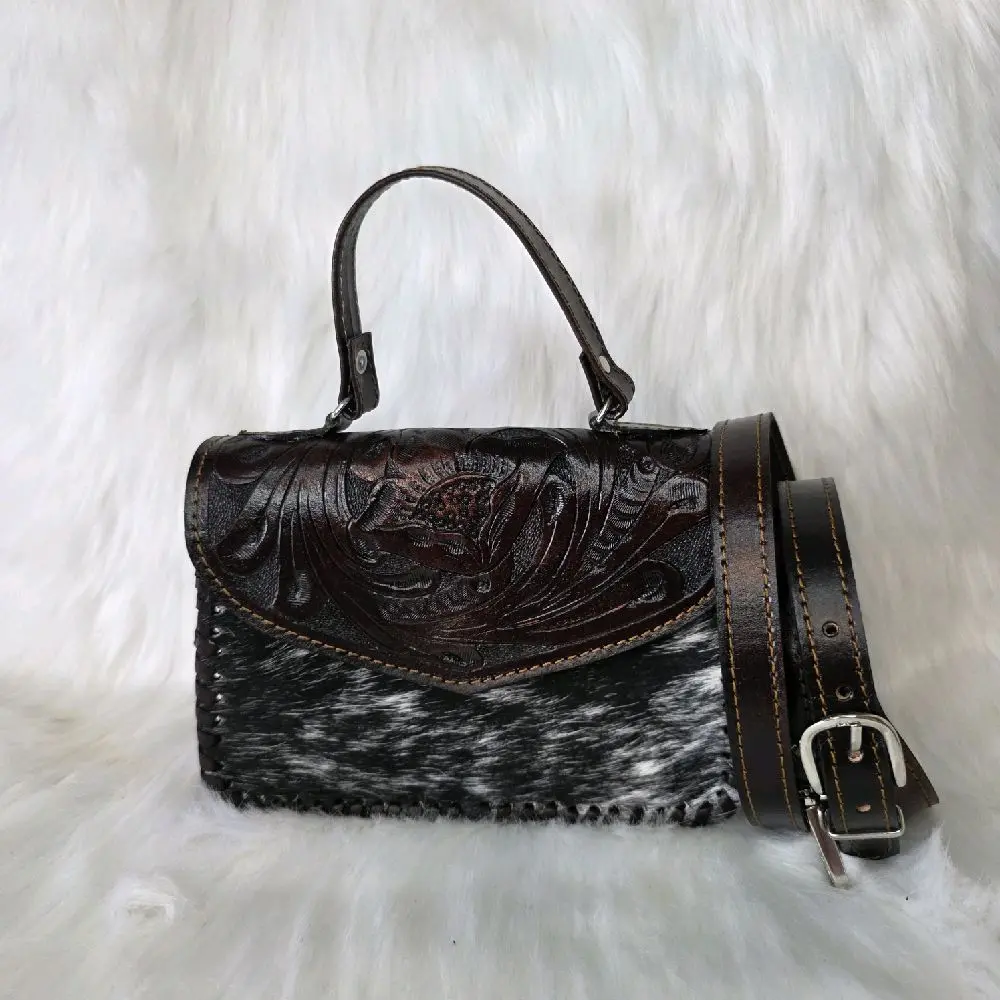 Chayito Handbag - Brown Leather with Embossed Design and Adjustable Strap