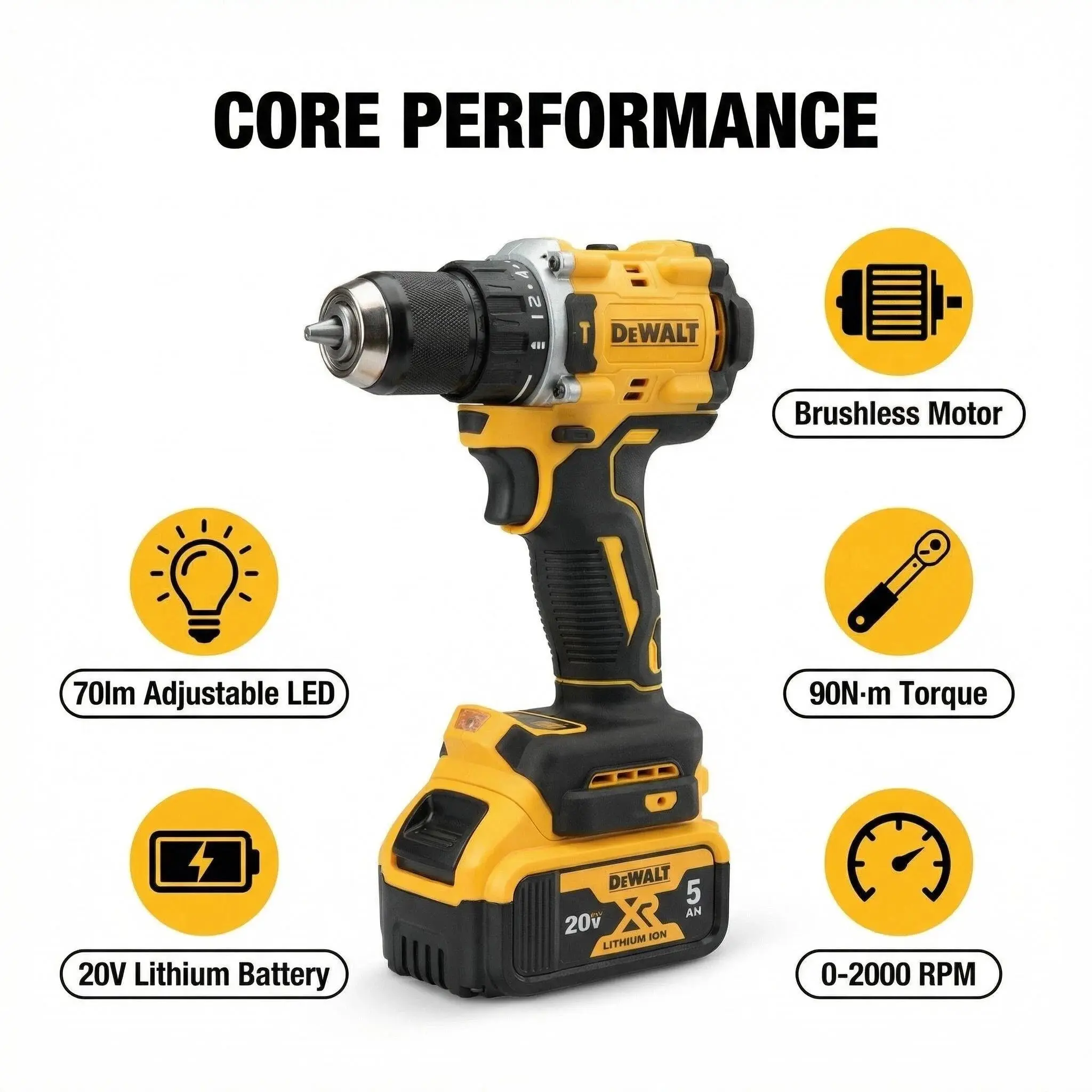DEWALT DCF805 Power Drill Brushless 20V LED 90Nm