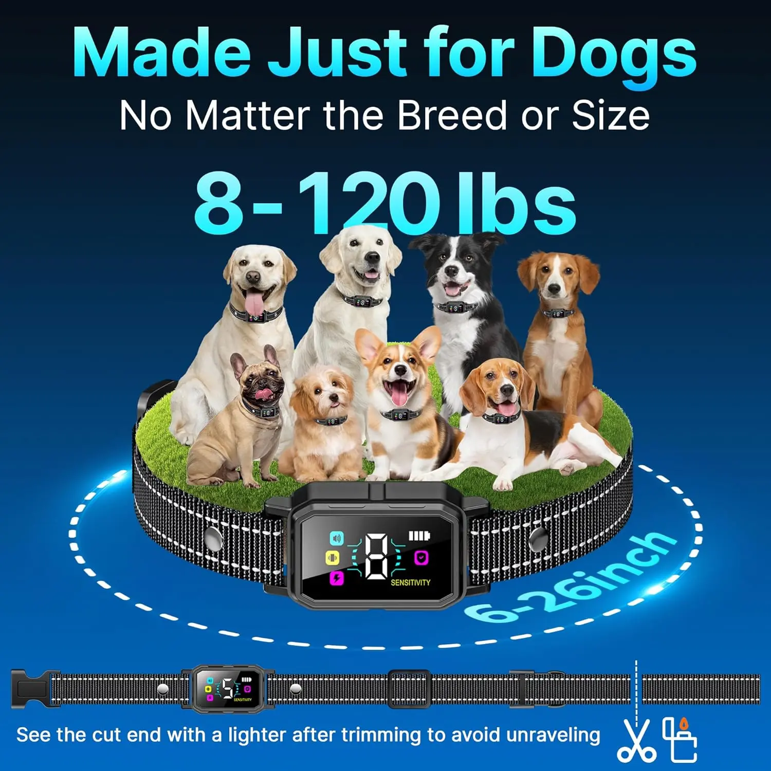 • ADVANCED SMART TRIGGER SENSOR - Our upgraded bark collar is equipped with an intelligent barking detection chip that filters out background noises and other dogs' barks. This ensures that the collar only activates when your dog barks, preventing false triggers and providing consistent, fair reinforcement that speeds up the learning process.