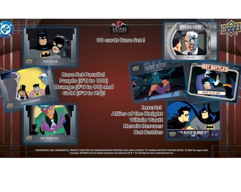 ·Upper Deck has teamed up with DC to create an incredible Batman: The Animated Series trading card collection, bringing to life the most memorable moments of the iconic series for fans to treasure!