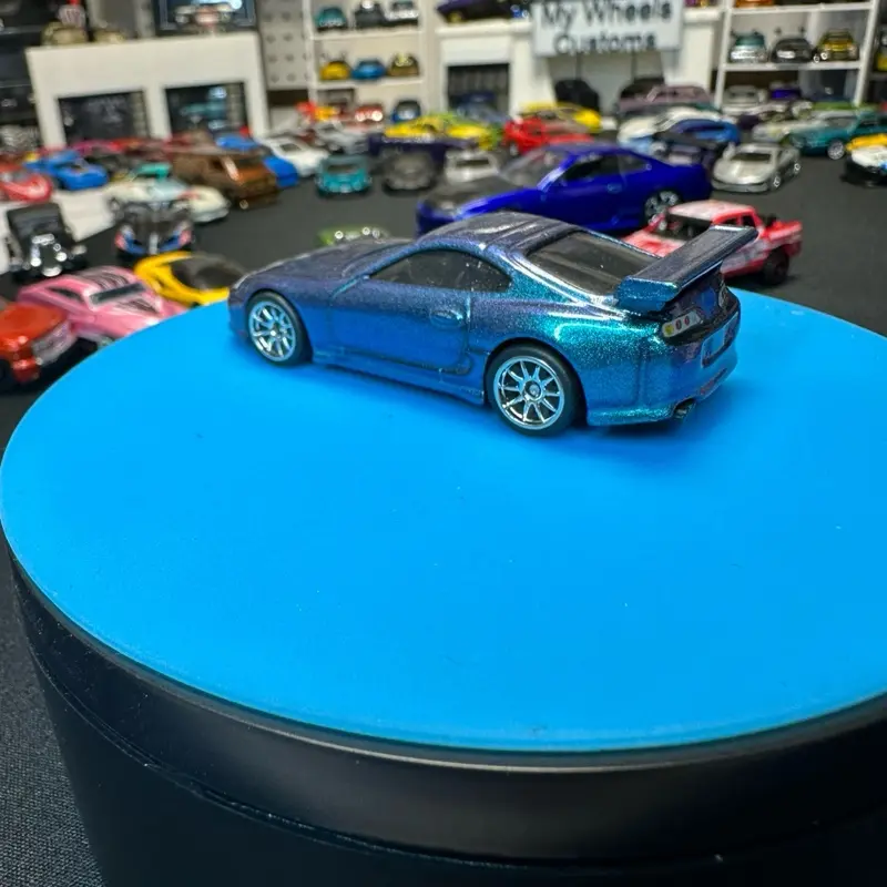 Custom Toyota Supra Model Car - Blue Glitter Finish - Detailed Replica for Collectors