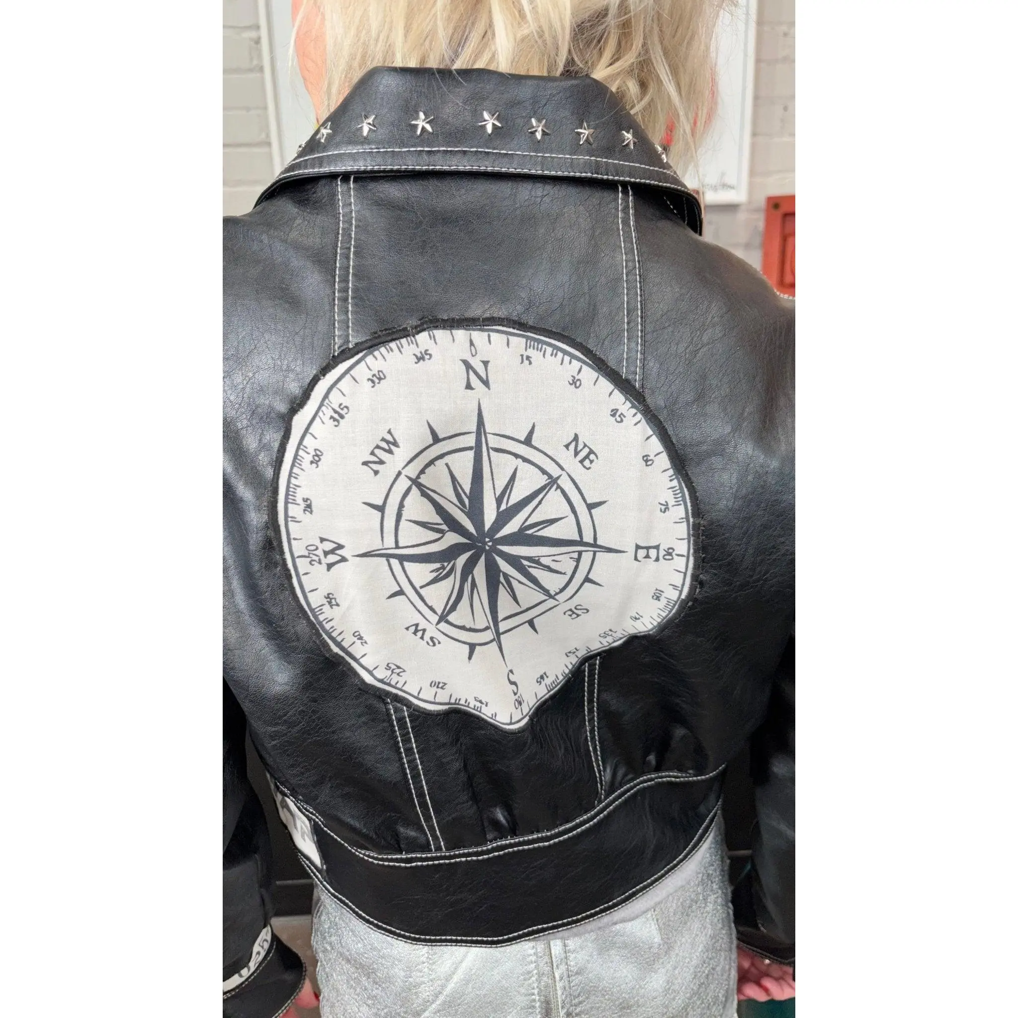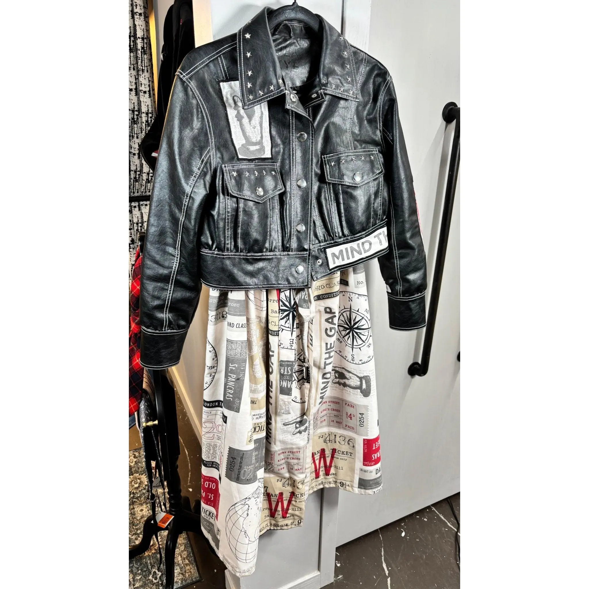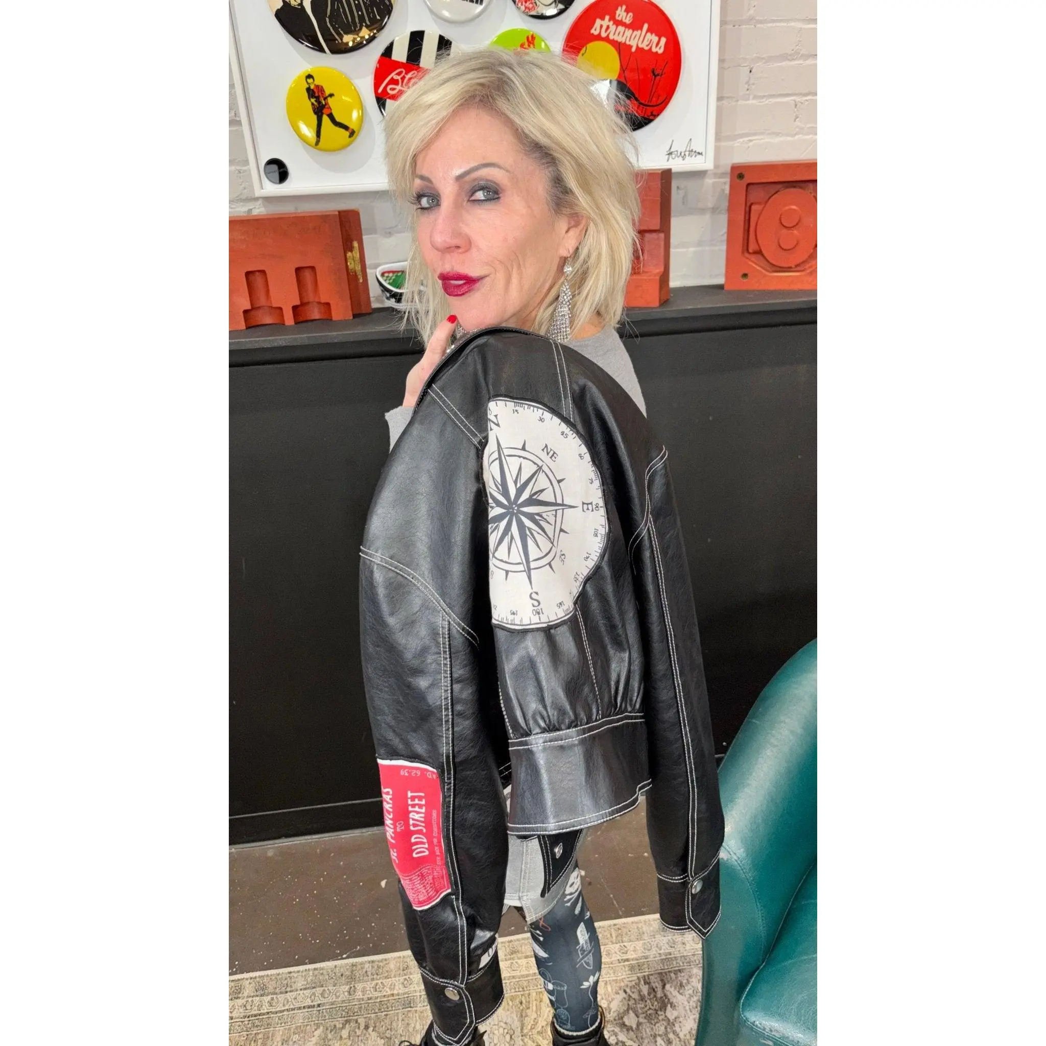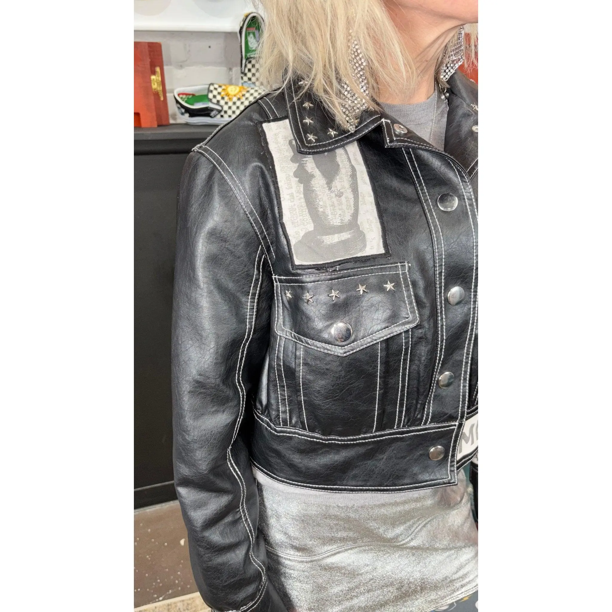 One-of-a-kind faux leather statement jacket