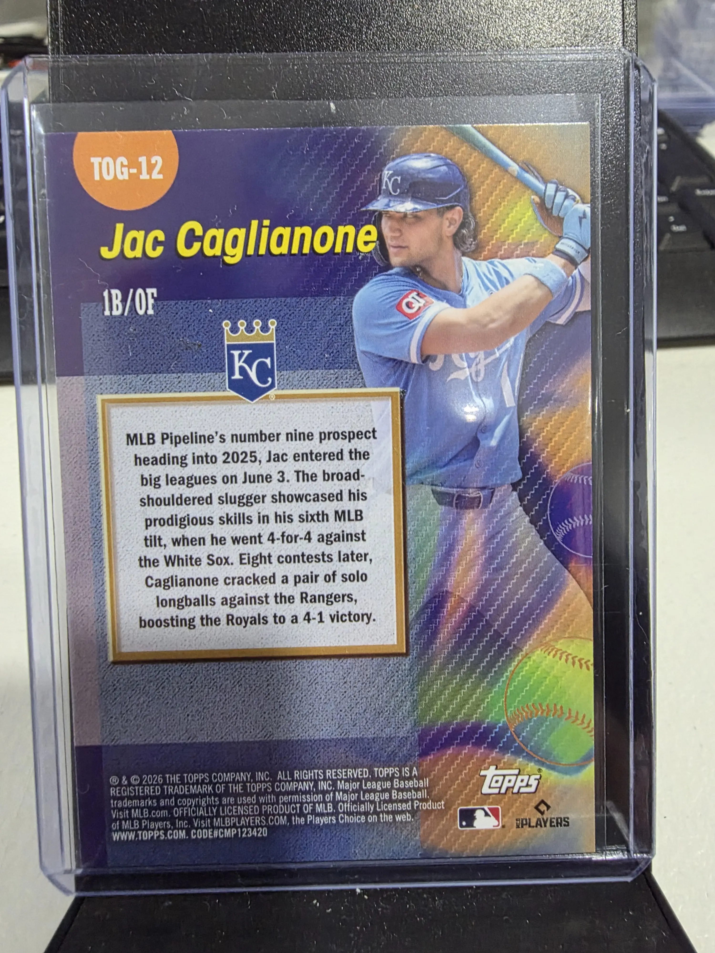 Jac Caglianone Topps Titans of the game TOG-12 refractor 2026 Rookie Card Mint Condition or better