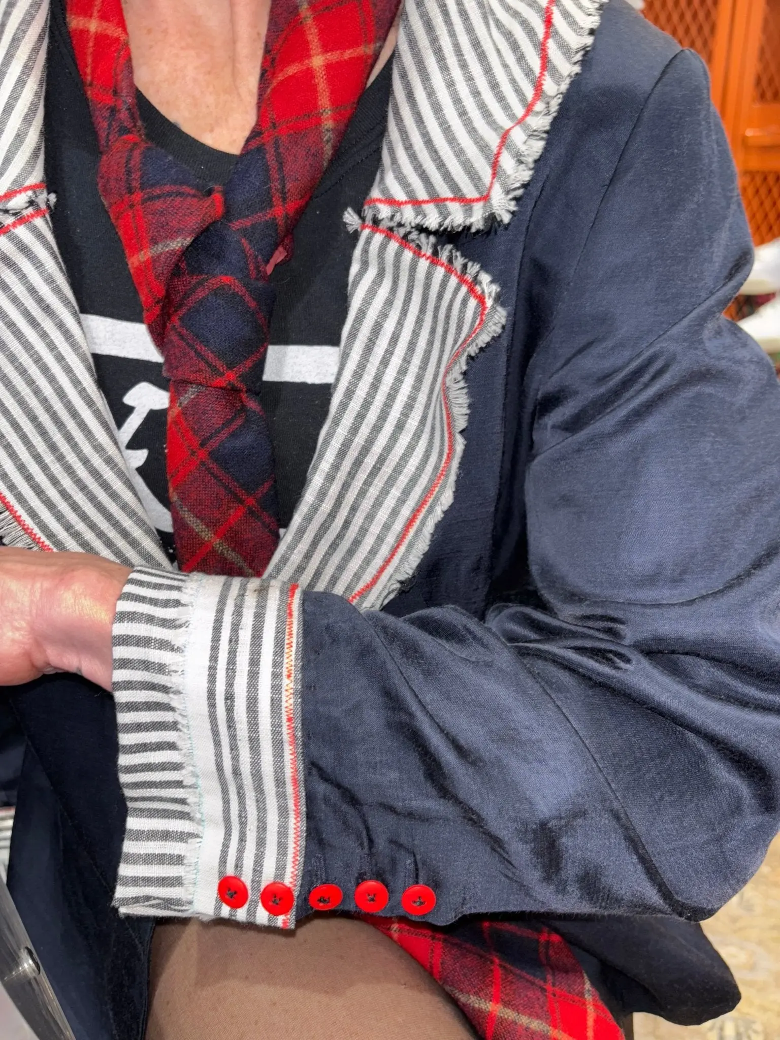 Handcrafted in ENGLAND exclusively for Reckless Swagger in St Paul, Minnesota, this one-of-a-kind blazer merges polished craftsmanship with punk attitude. Every element — from the custom black and white muslin collar and cuff inserts to the subtle deconstruction lines — celebrates imperfection, individuality, and artistic protest.