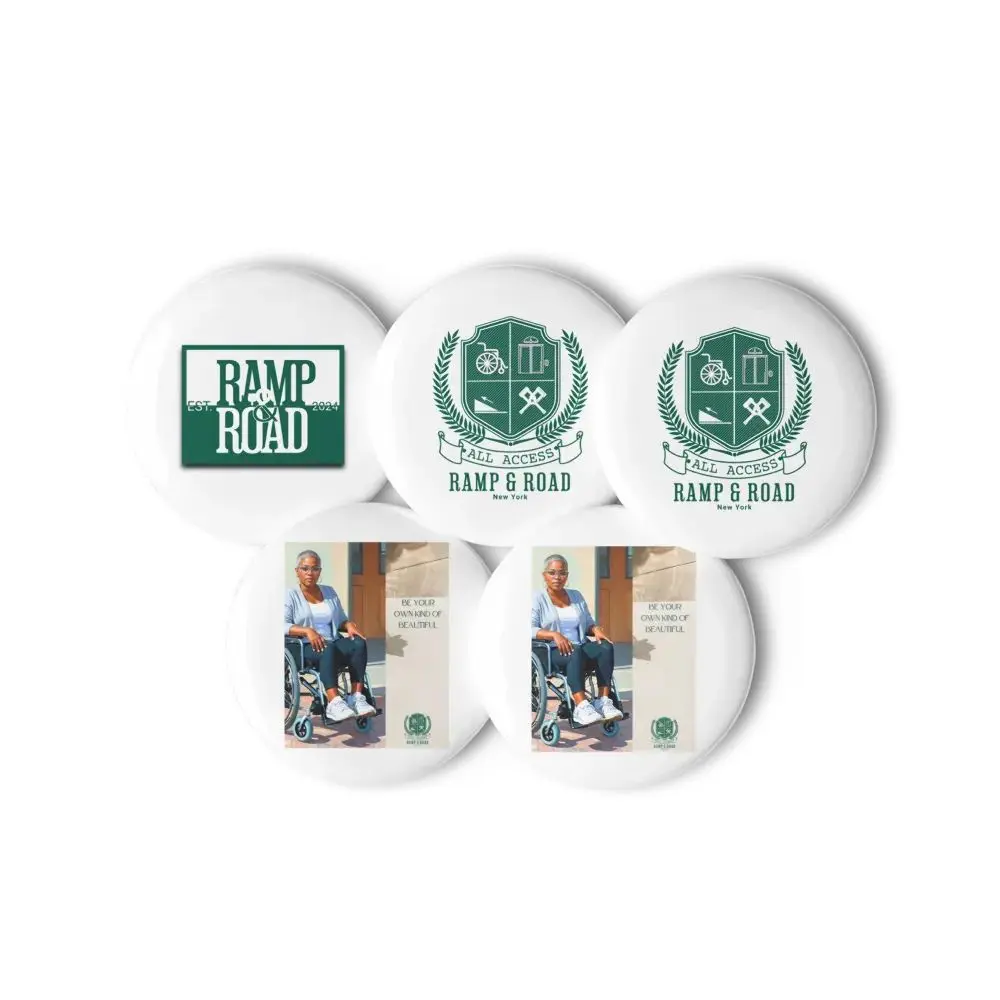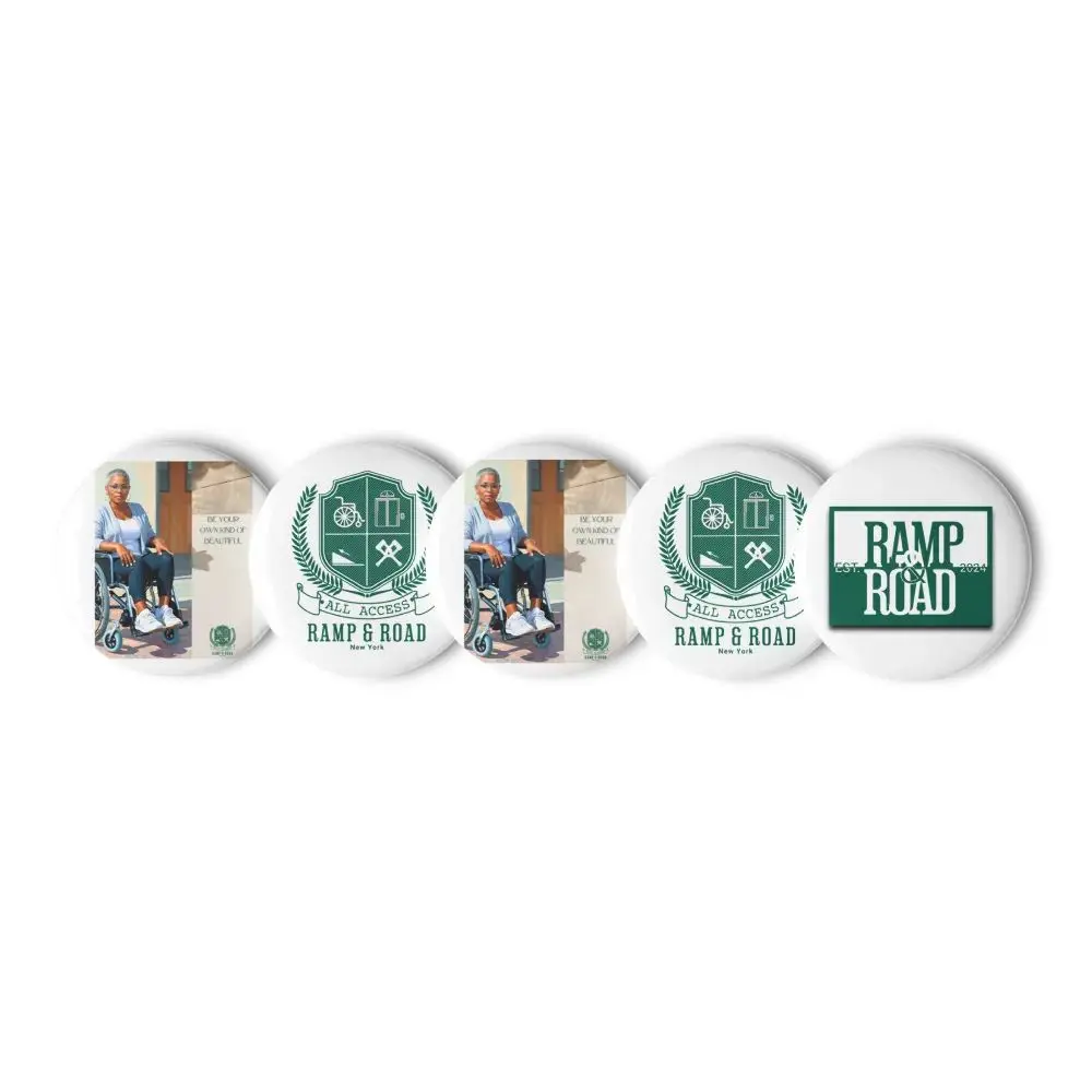 Express yourself with our 'RampxRoad' pin button set. This collection of 5 scratch-resistant, glossy-finish buttons in 1.25″ and 2.25″ sizes is easy to wear and perfect for adding flair to any outfit. Show your support for inclusivity and empowerment!