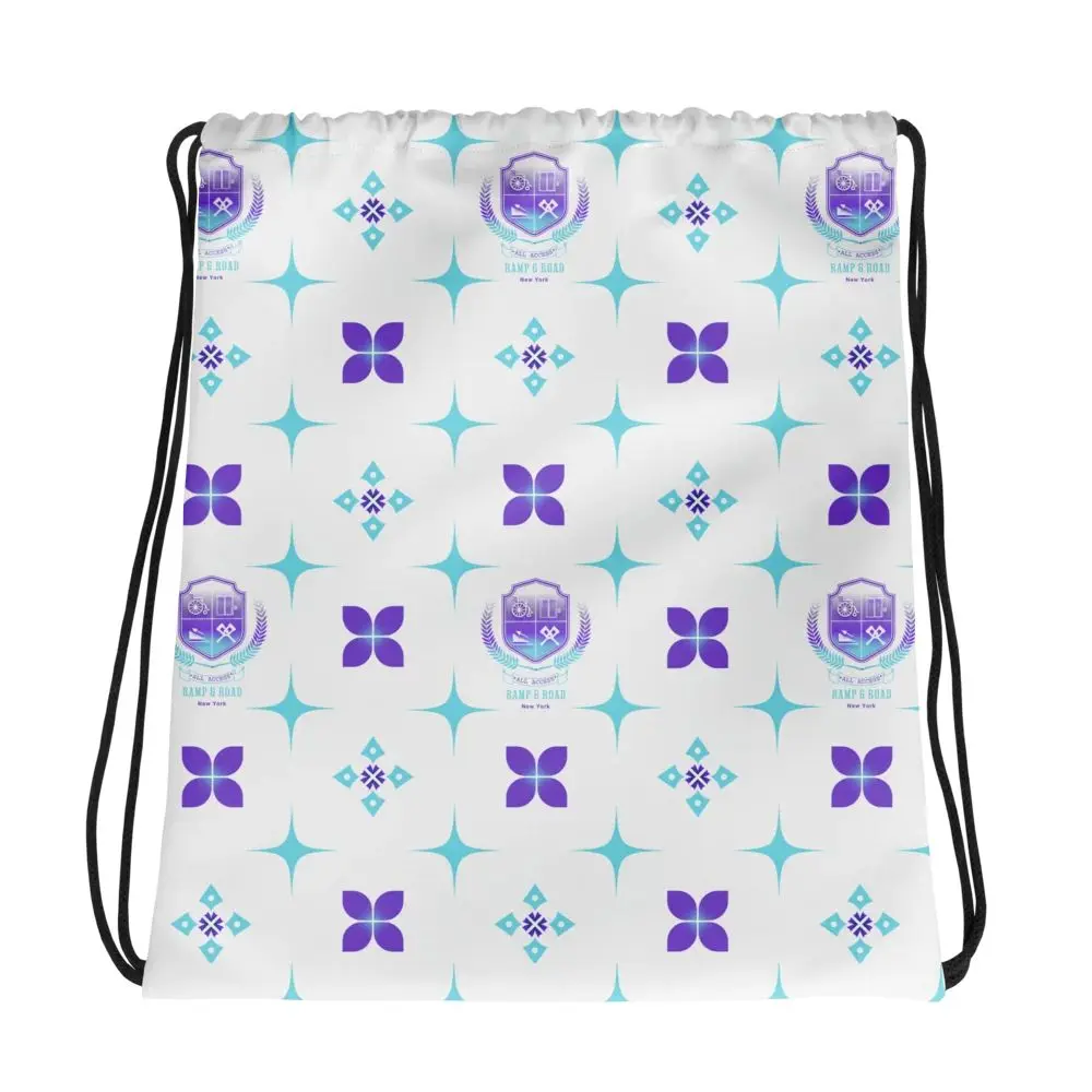 Stay stylish while carrying your essentials with our lightweight drawstring bag, featuring a RampxRoad logo pattern for everyday use.
