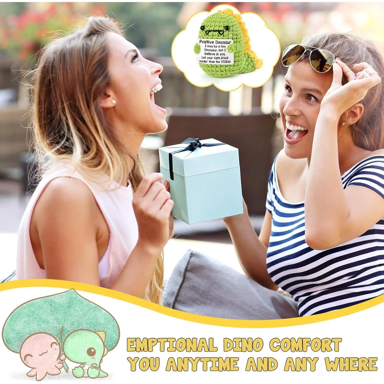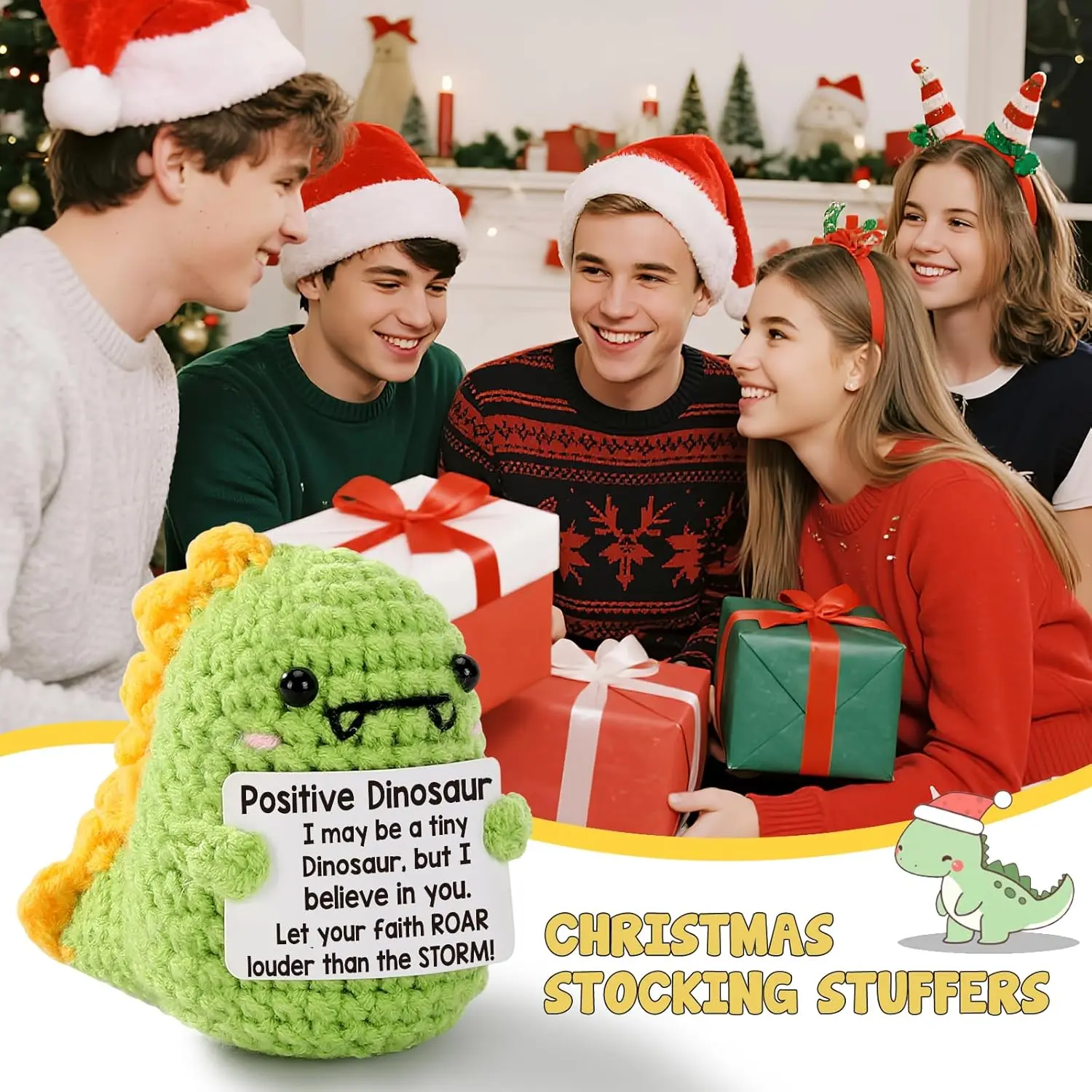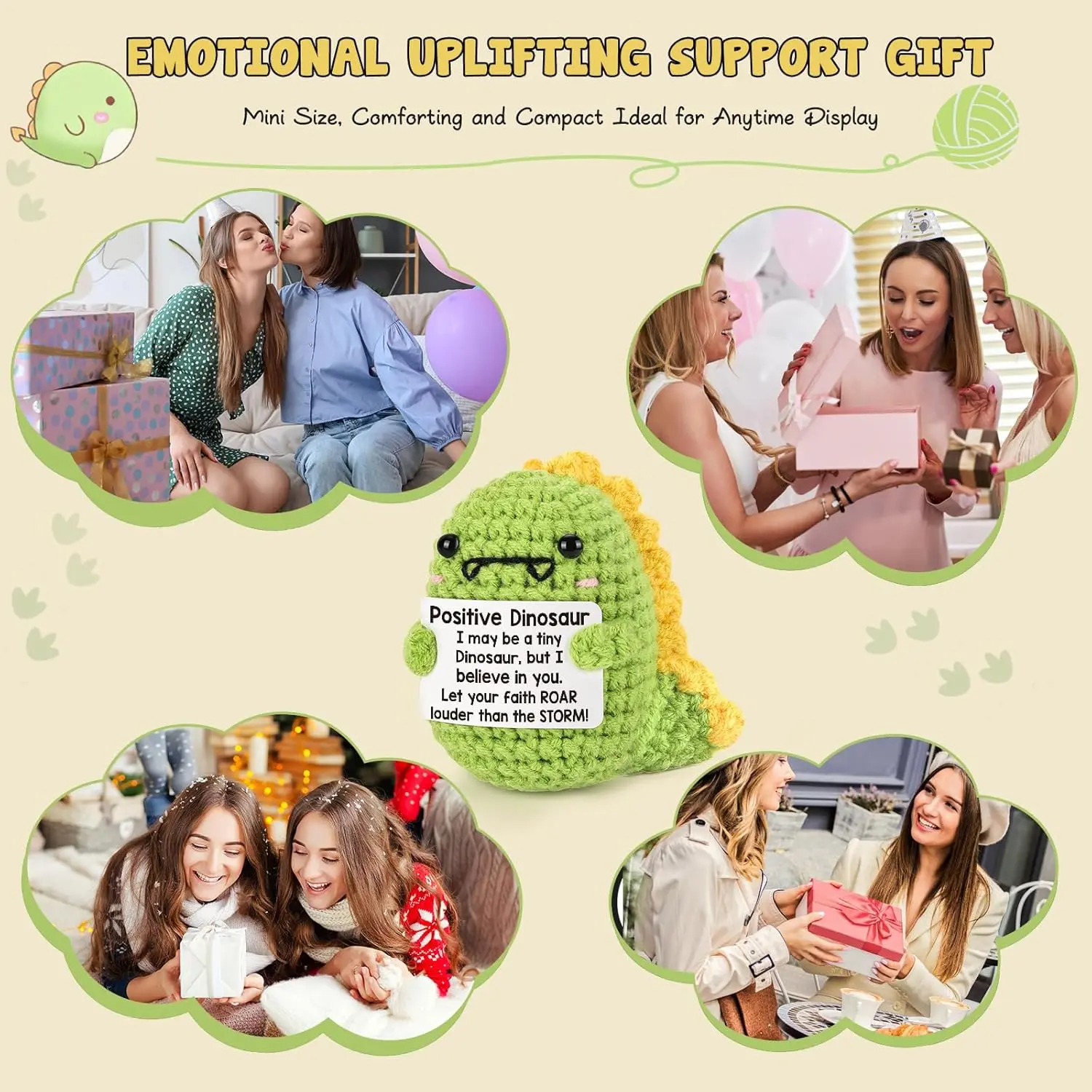 Cute mini handmade inspirational dinosaur plush! This little positive crochet dino is the perfect sweet gift for friends, family, colleagues and loved ones. Great as encouragement presents, birthday gifts and Christmas stocking stuffers for everyone.