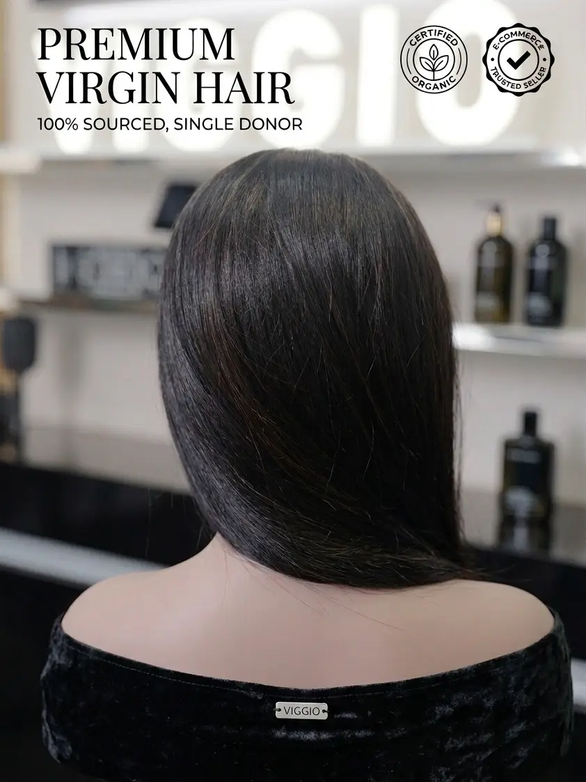 VIGGIO 100% Human Hair Training Mannequin Head – Black, 25″, Realistic Shoulders