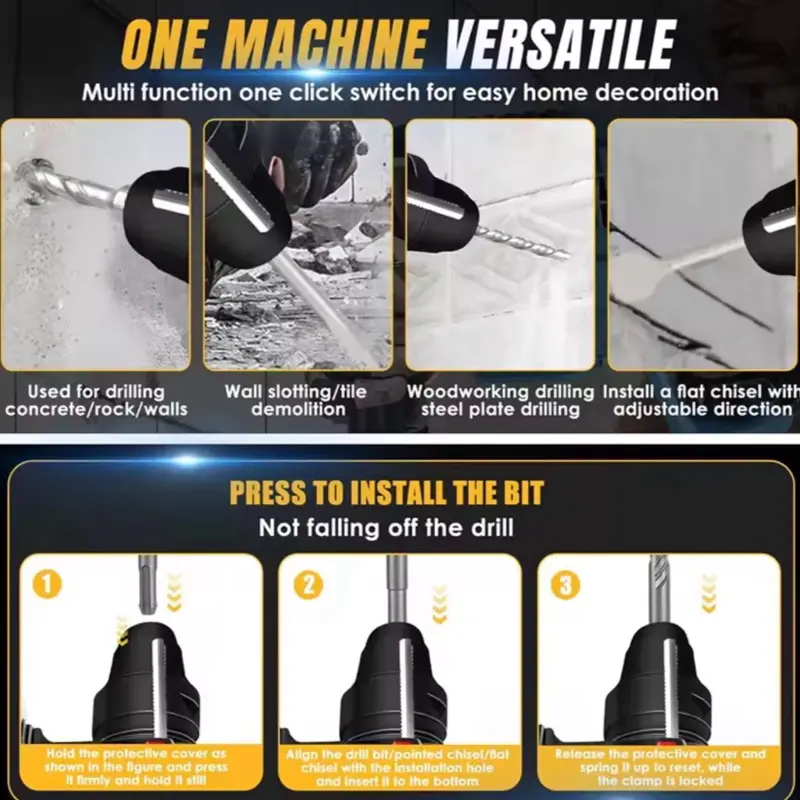 ·Steel bit clip, quick installation, tight firm, prevent the bit from falling.