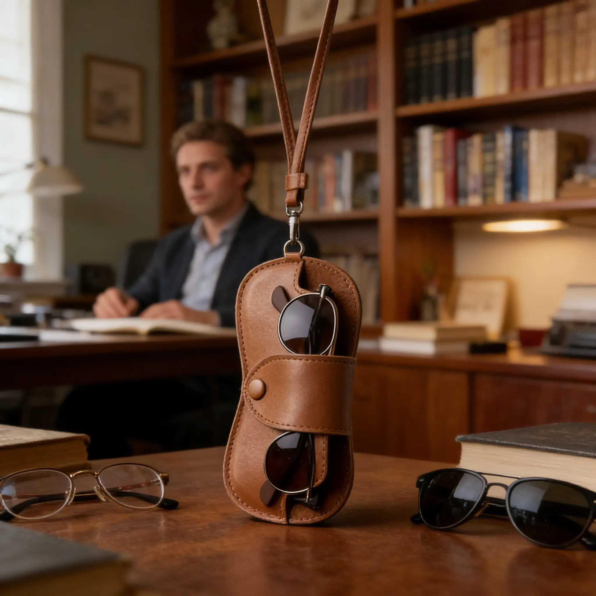 Creative Fashion Neck Strap Glasses Case, All-Season Unisex Artificial Leather, Perfect Gift for Birthdays, Anniversaries, Graduation