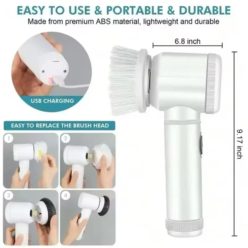 Electric Spin Scrubber Cordless with 5 Replaceable Brush Heads for Efficient Cleaning Tools