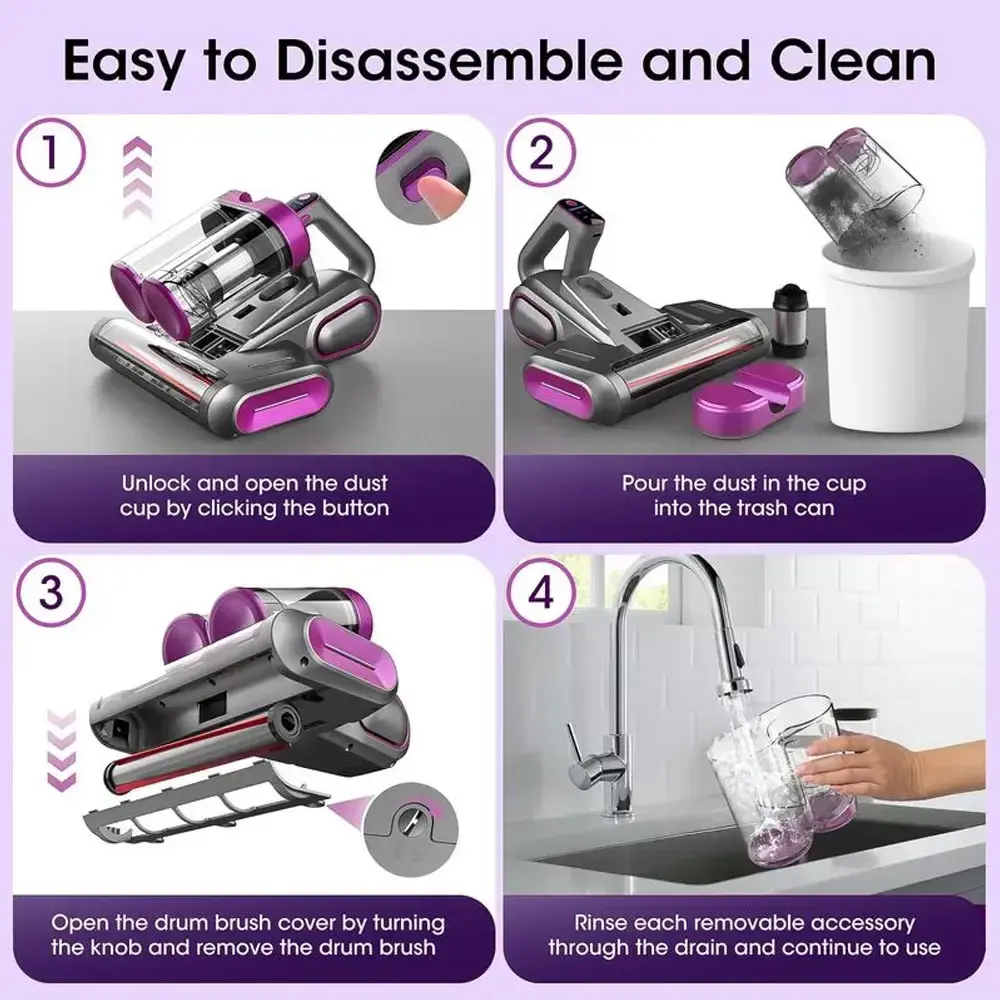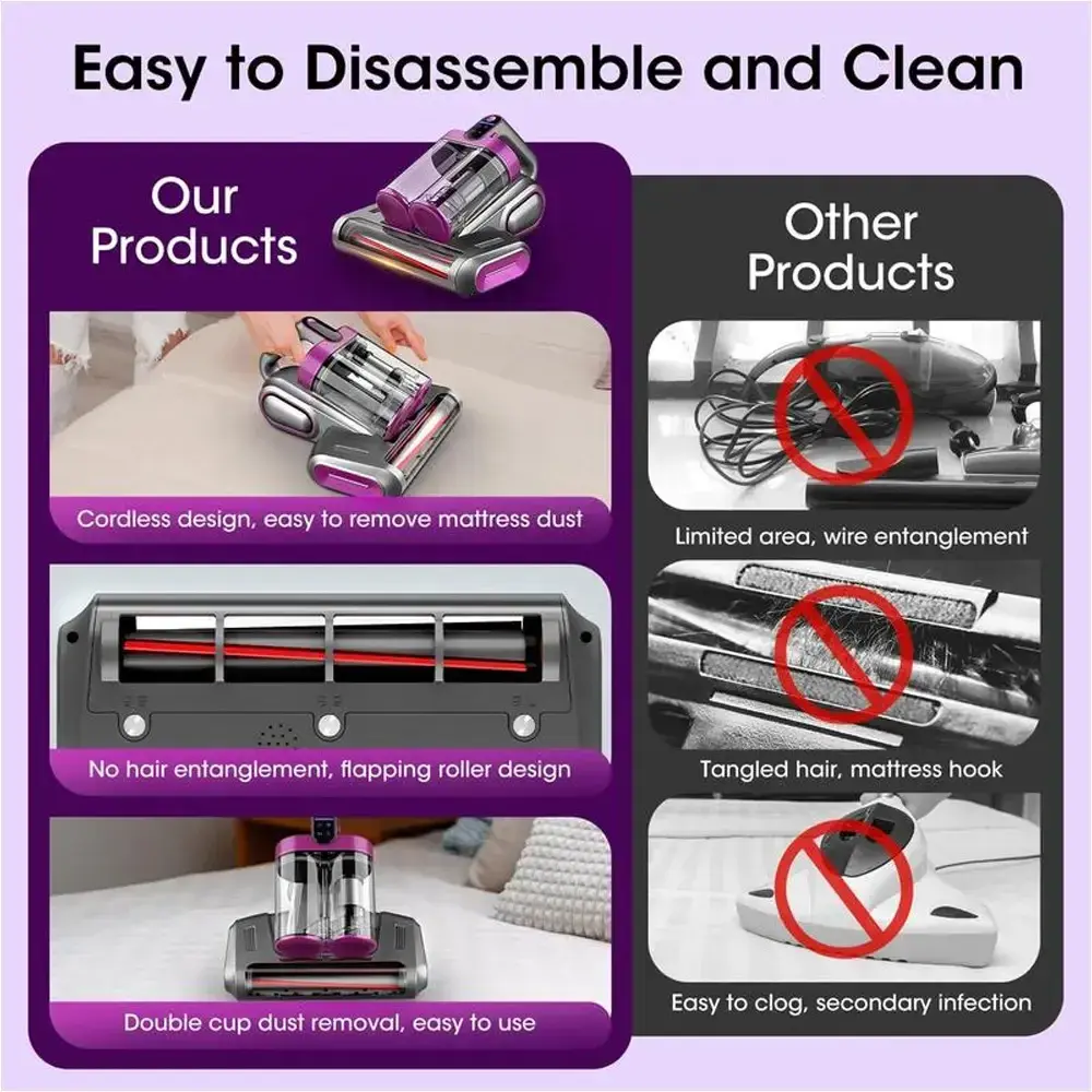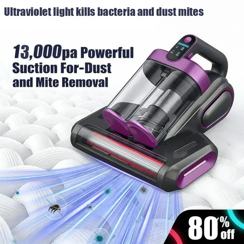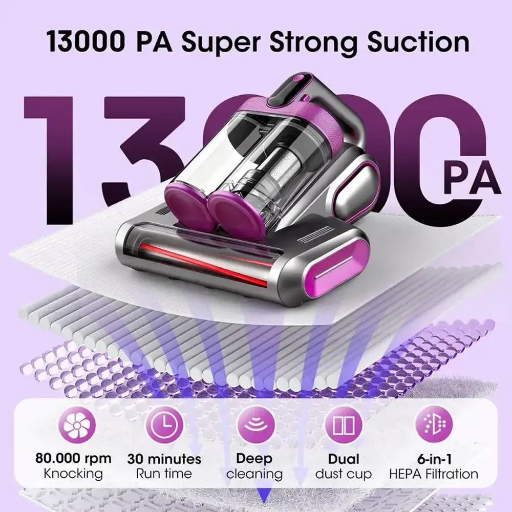 Mattress Vacuum Cleaner with UV-C Lamp & LED Display 13kPa Suction Brushless Motor HEPA Filter for Beds Sofas