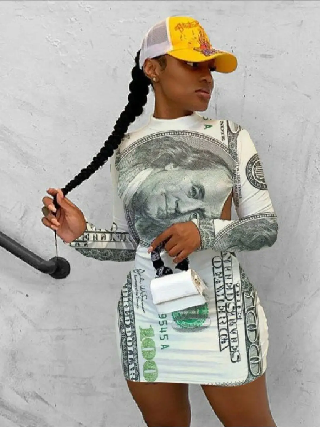 Money Print Backless Dress