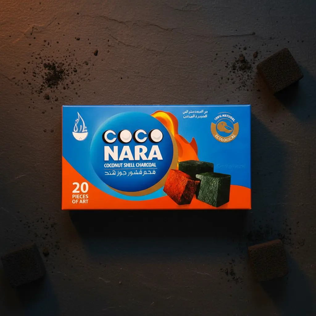 ·COCONARA 20CT: This product features a box of 20 coconut shell charcoal flats, perfect for shisha use. Ideal for those seeking a natural and traditional smoking experience.