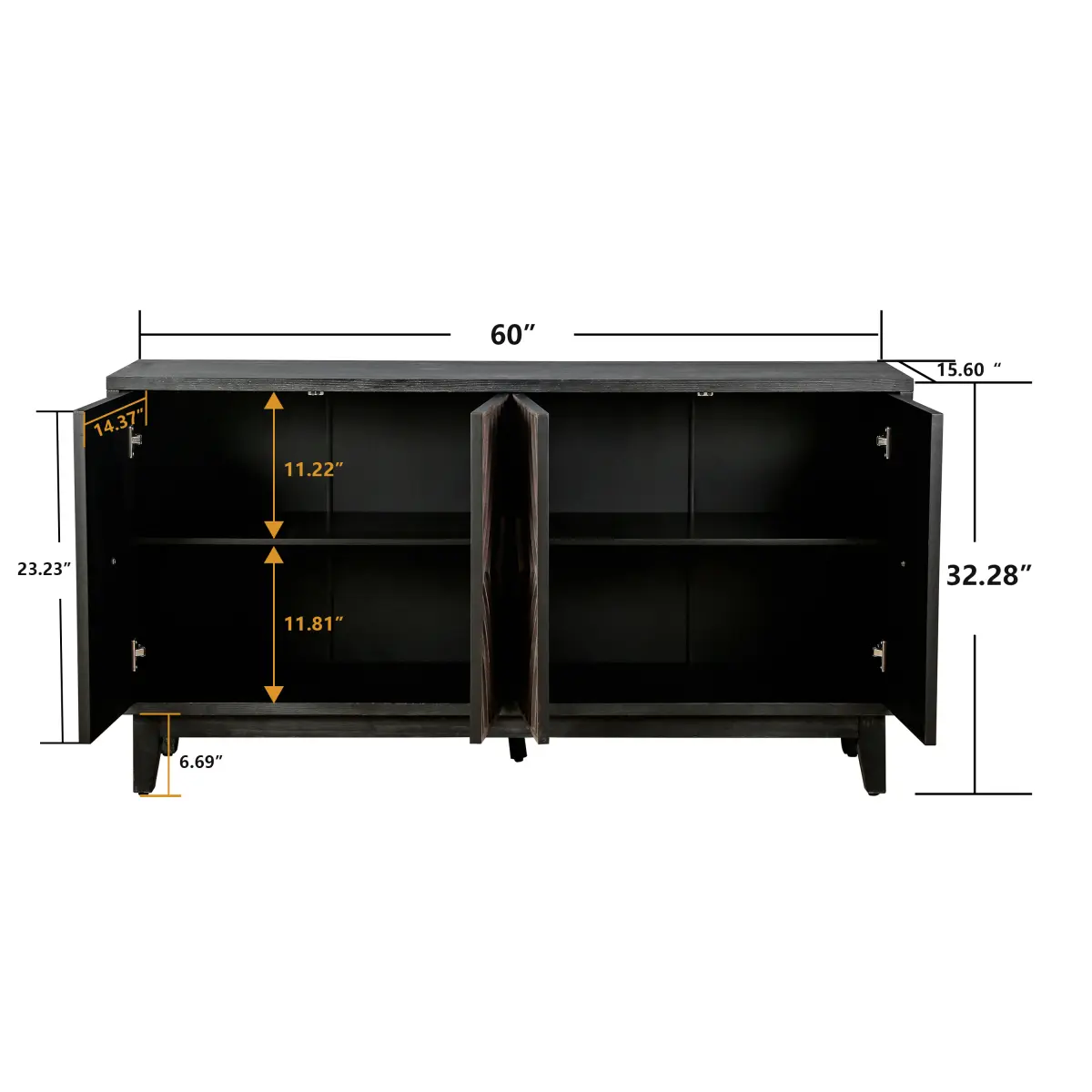 ·LARGE STORAGE CABINET - Dimension: 60"Wx15.6"Dx32.28"H. This buffet cabinet features 4 doors and 2 interior shelves, offering spacious storage space for all of your living items and meet your various storage needs.