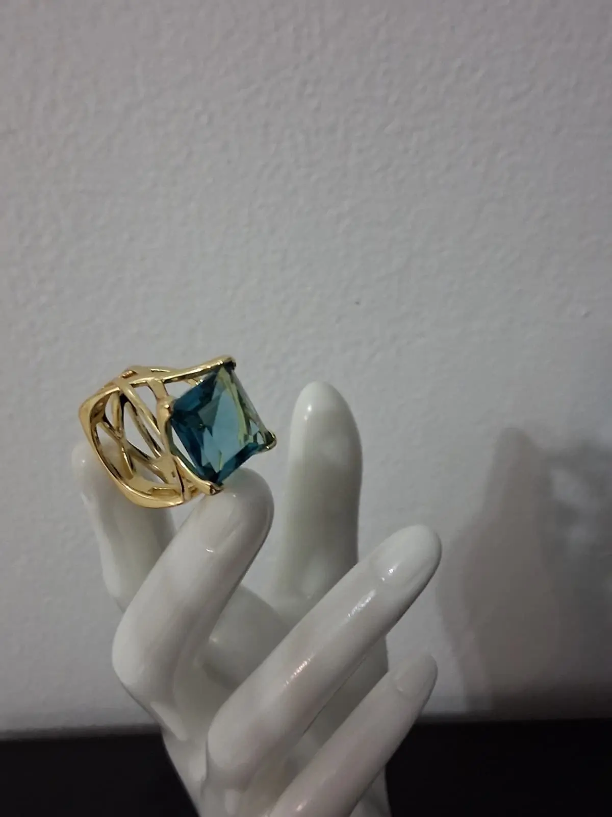 Its brilliant blue crystal, cut with sharp angles, reflects light beautifully, creating an eye-catching shine that elevates any outfit.