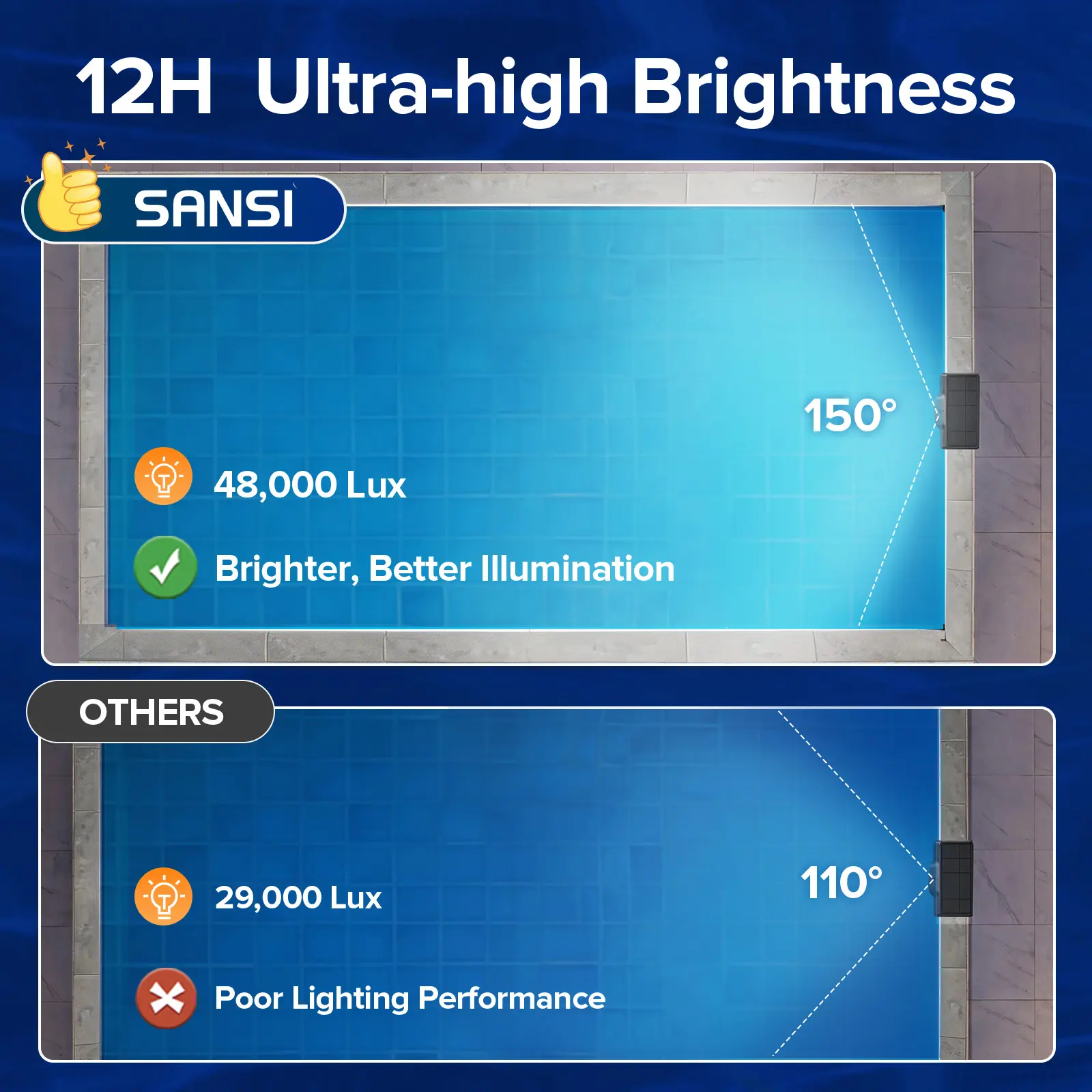Brightness may vary depending on lighting mode, surrounding light, and darkness after sunset. For a brighter and more vibrant pool atmosphere, you can add more lights based on personal preference.